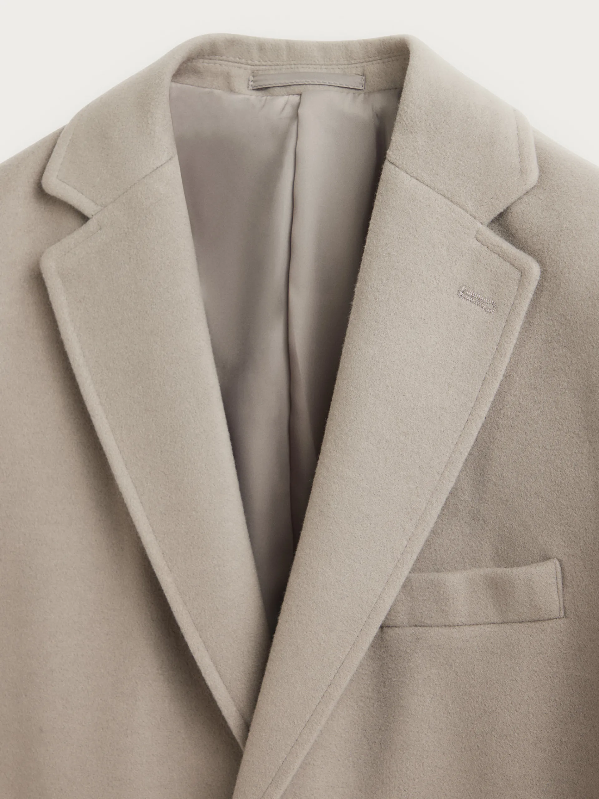 Abrigo de paño liso con cuello y solapa. Cierre central mediante botones, manga larga con botones en su terminación y dos bolsillos a la altura de la cintura. Abertura central en el bajo de la espalda. Corte regular fit.