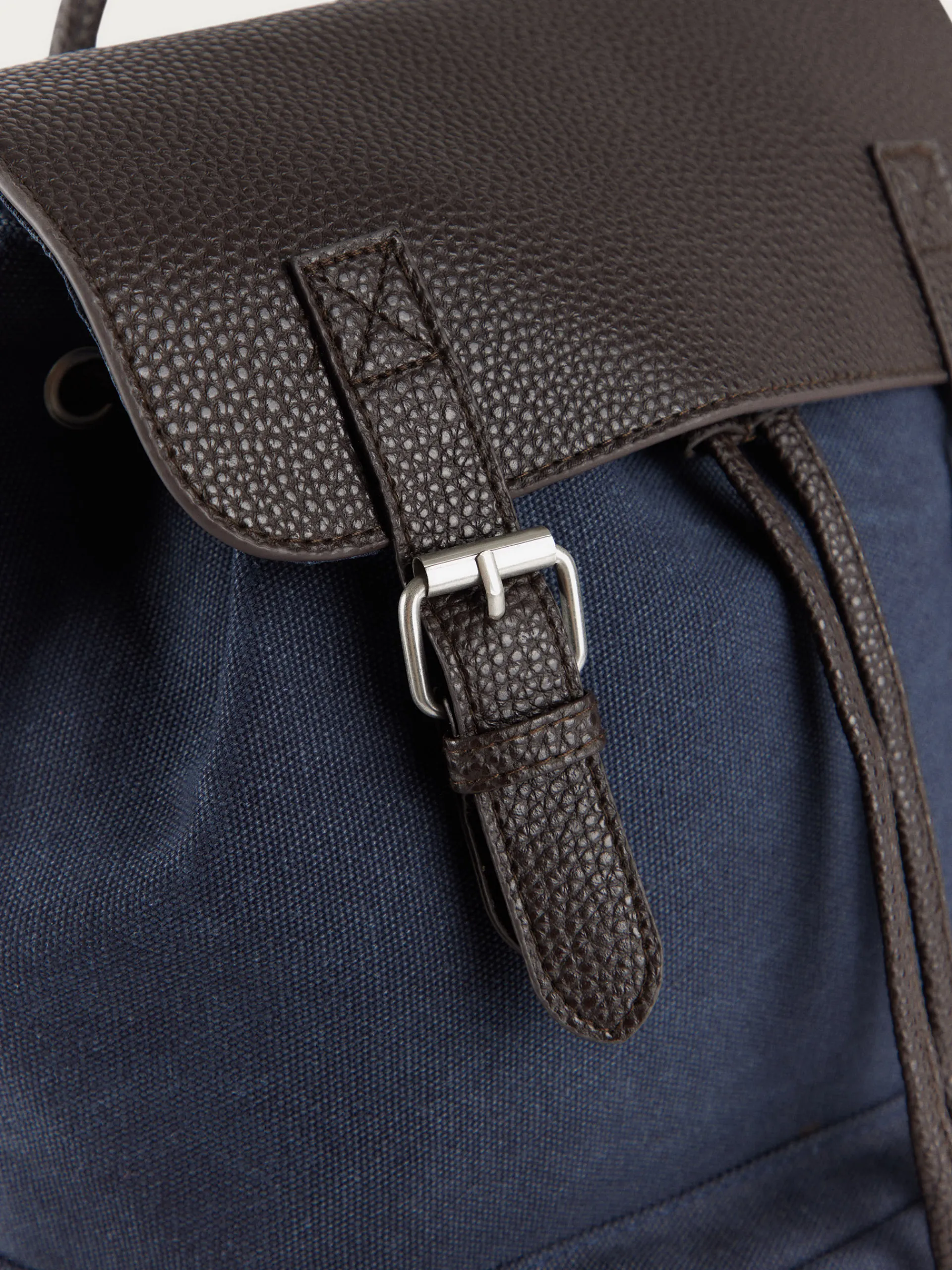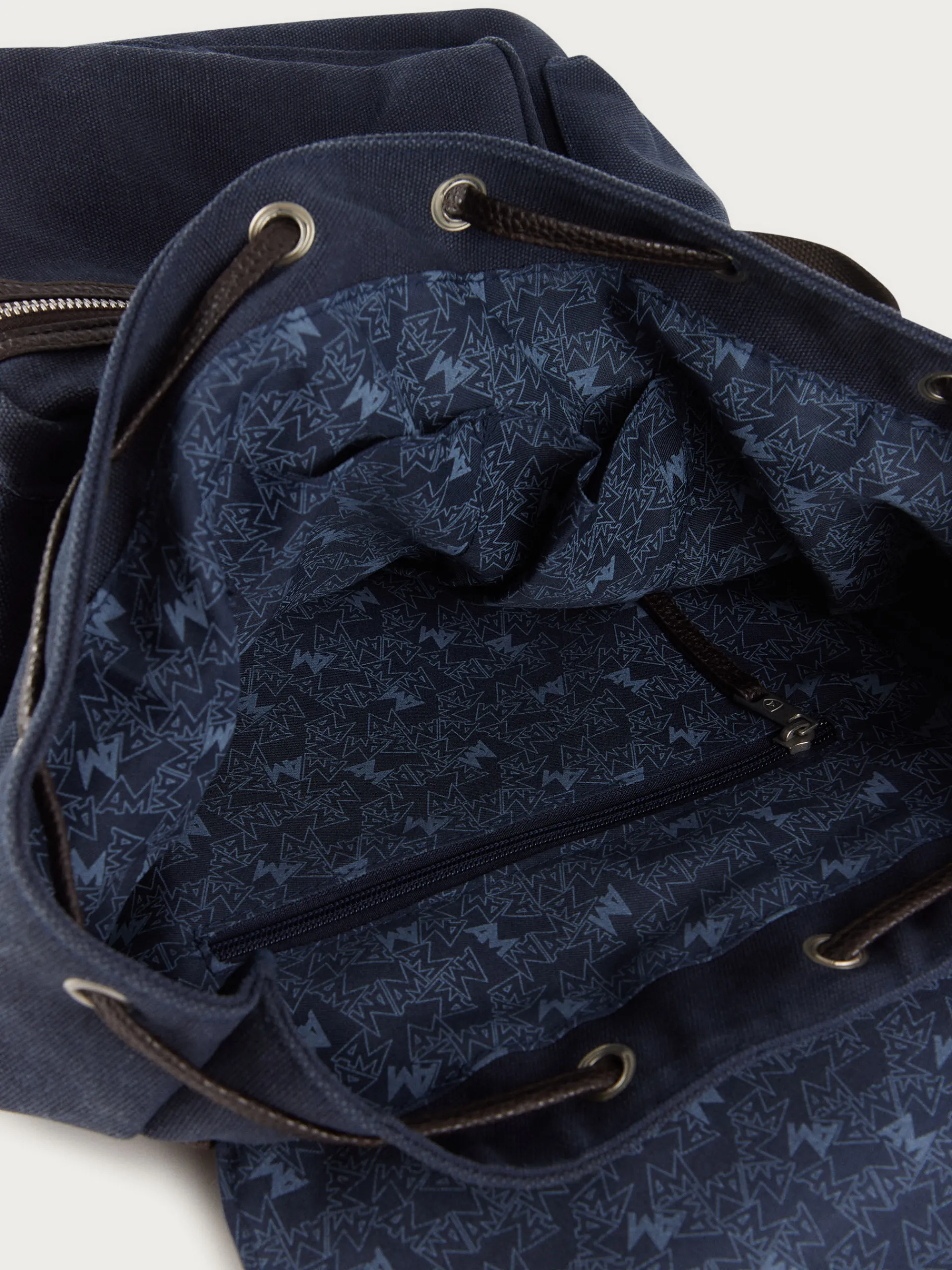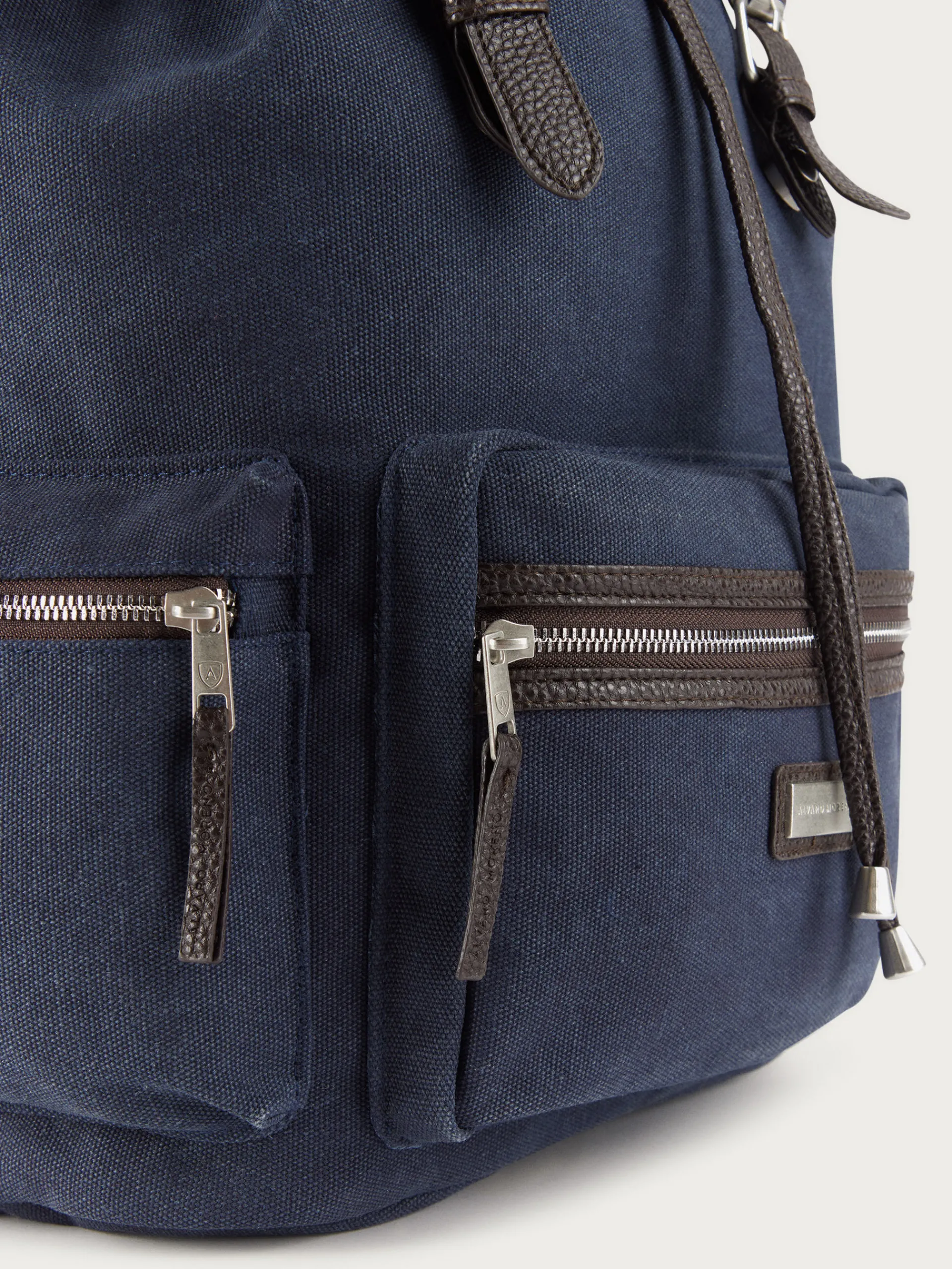 Mochila estilo explorer con dos asas de hombro ajustables, gran compartimento principal con cierre mediante solapa y diferentes bolsillos en su interior. Cordón ajustable. Bolsillo en el frontal y en ambos laterales con cierre mediante cremallera. Forrado en su interior.