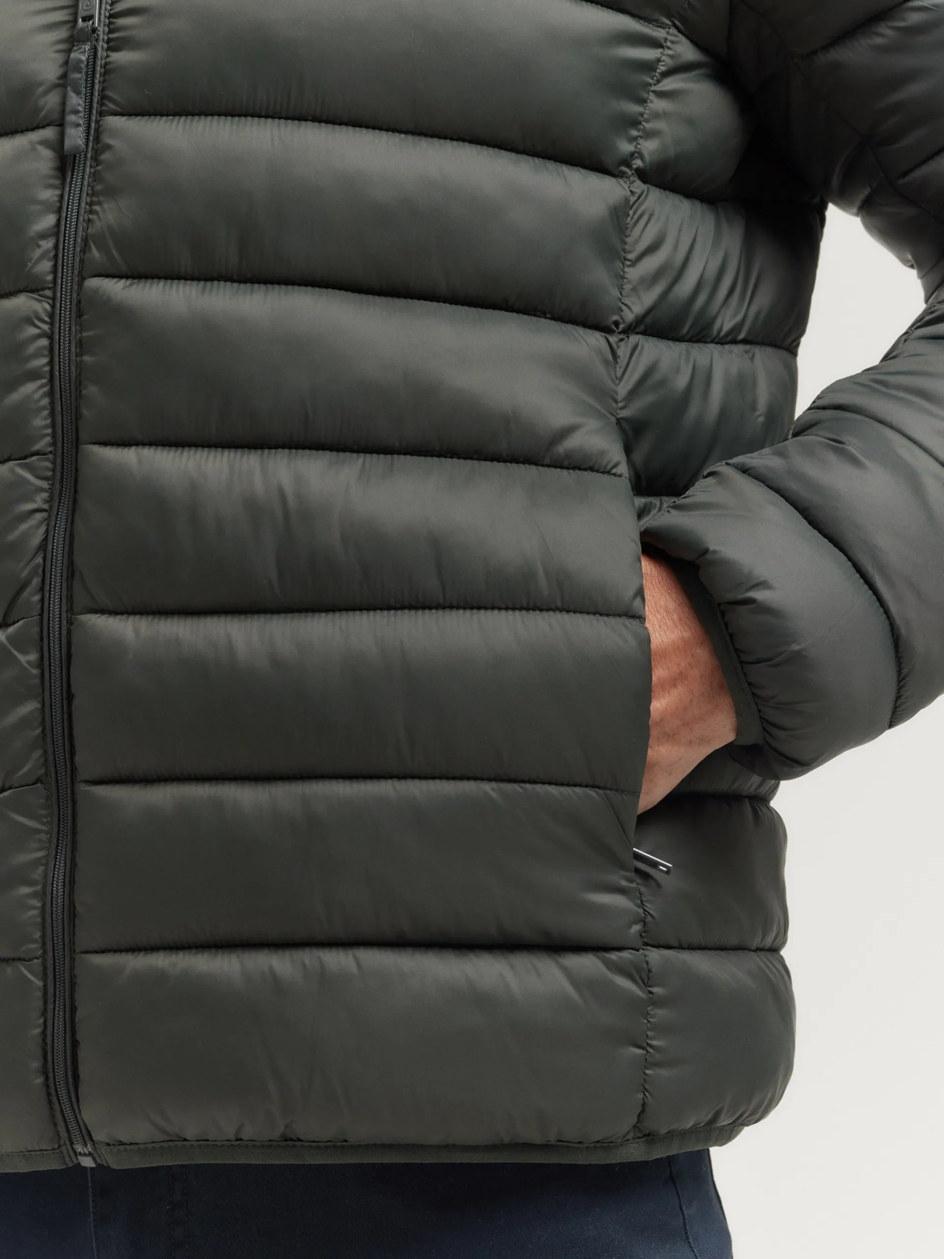 Cazadora acolchada con cuello subido. Cuenta con cierre central mediante cremallera, manga larga con puños elásticos y logo de la marca grabado en el frontal al tono. Bolsillo en el interior.