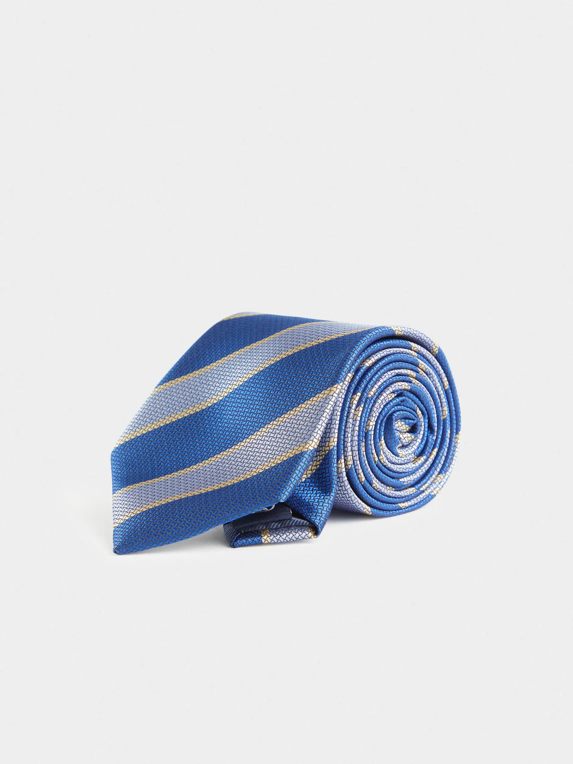 Corbata estilo jacquard con diseño estampado a contraste confeccionada en 100% poliéster. Cuenta con el logo de la marca grabado en el interior.
