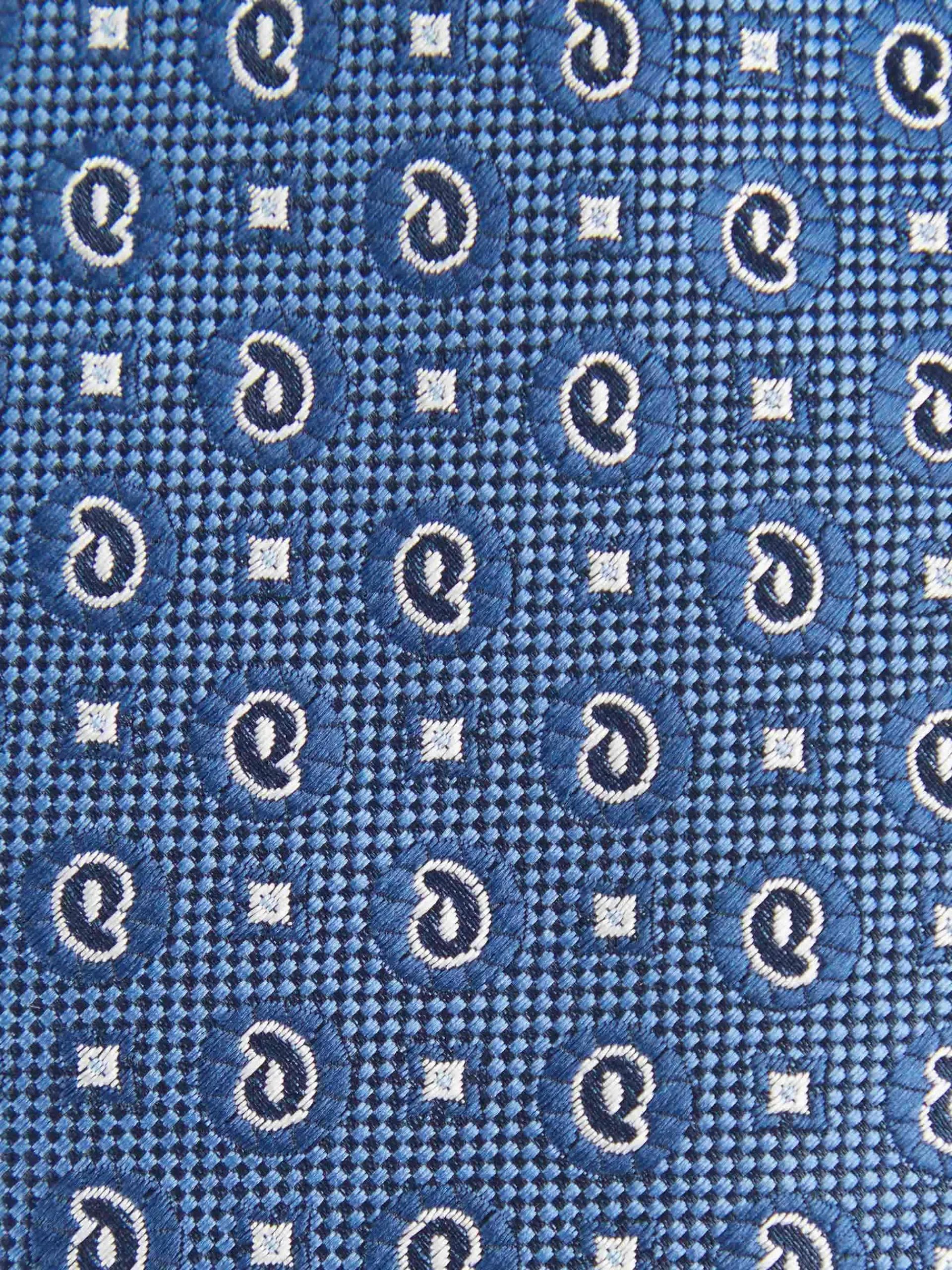 Corbata estilo jacquard con diseño estampado a contraste confeccionada en 100% poliéster. Cuenta con el logo de la marca grabado en el interior.