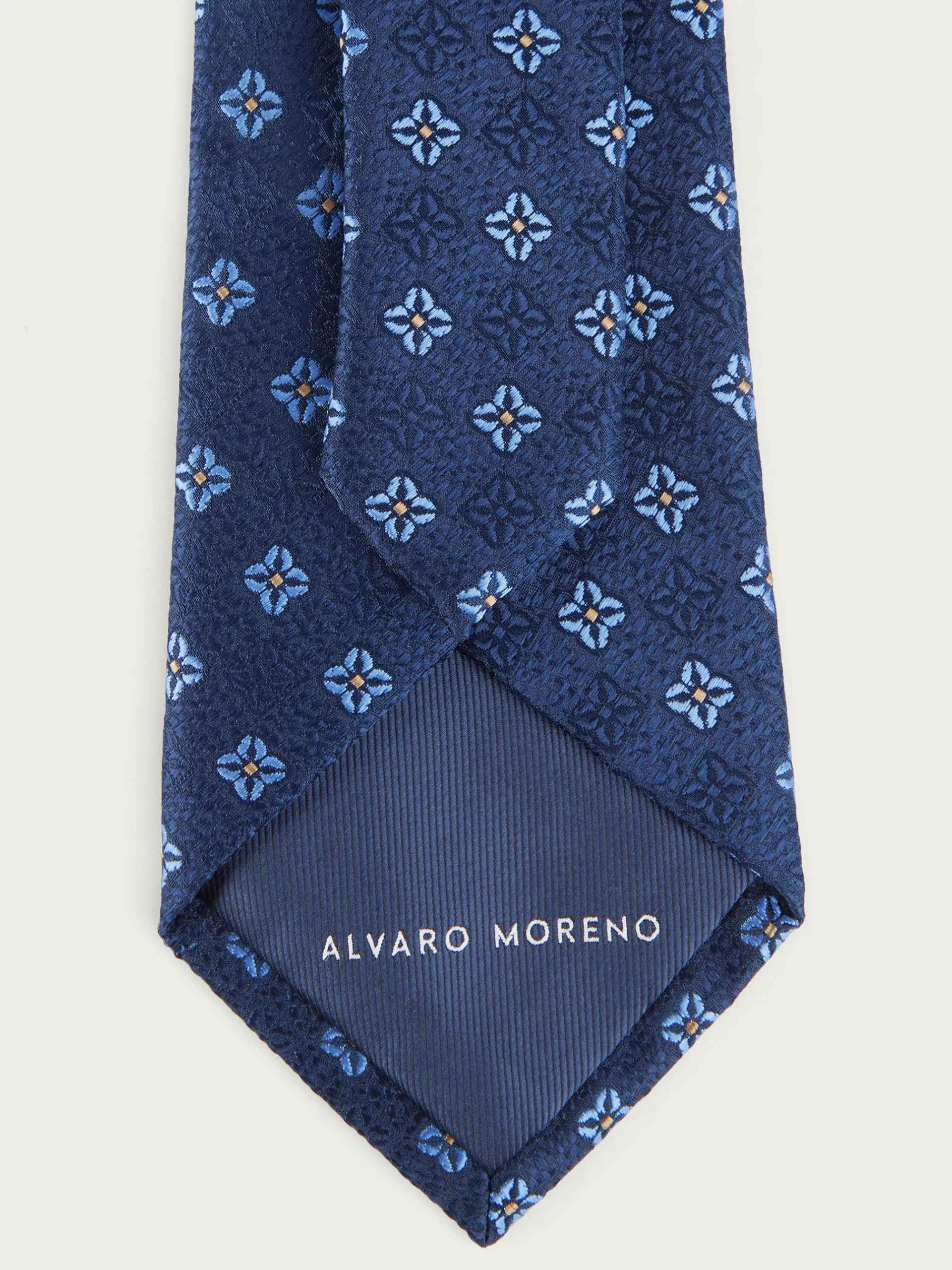 Corbata estilo jacquard con diseño estampado a contraste confeccionada en 100% poliéster. Cuenta con el logo de la marca grabado en el interior.