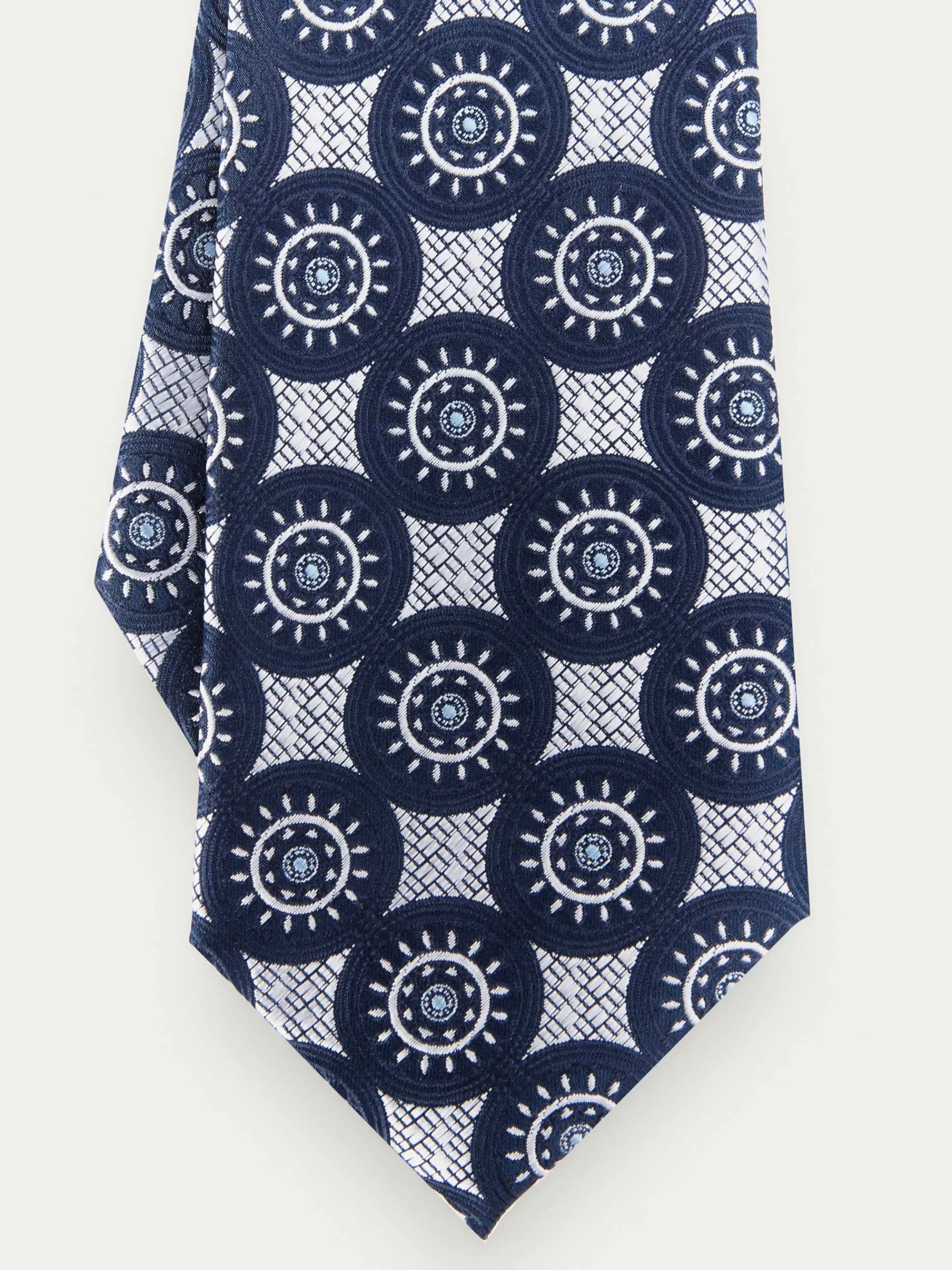 Corbata estilo jacquard con diseño estampado a contraste confeccionada en 100% poliéster. Cuenta con el logo de la marca grabado en el interior.