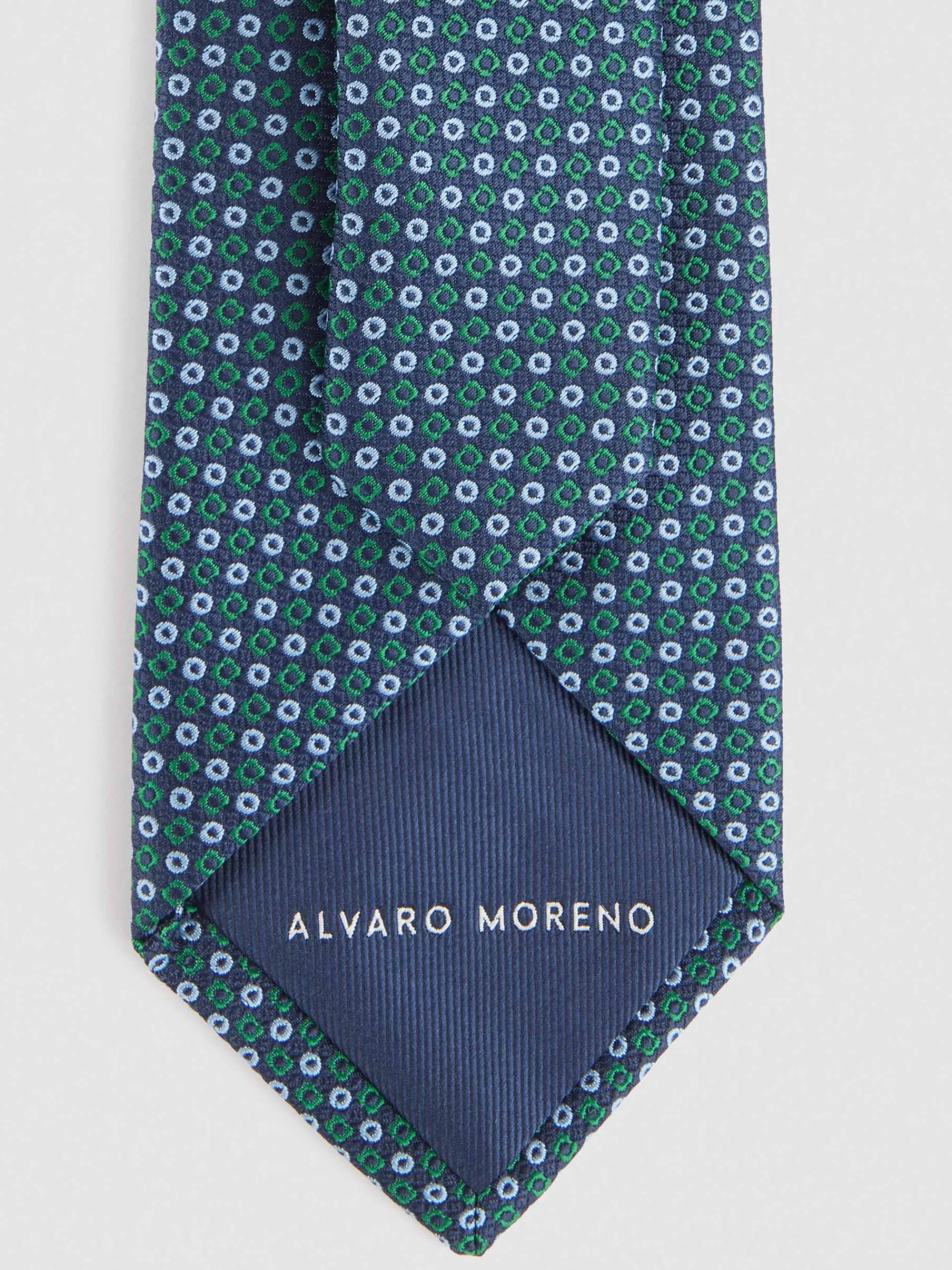 Corbata estilo jacquard con diseño estampado a contraste confeccionada en 100% poliéster. Cuenta con el logo de la marca grabado en el interior.
