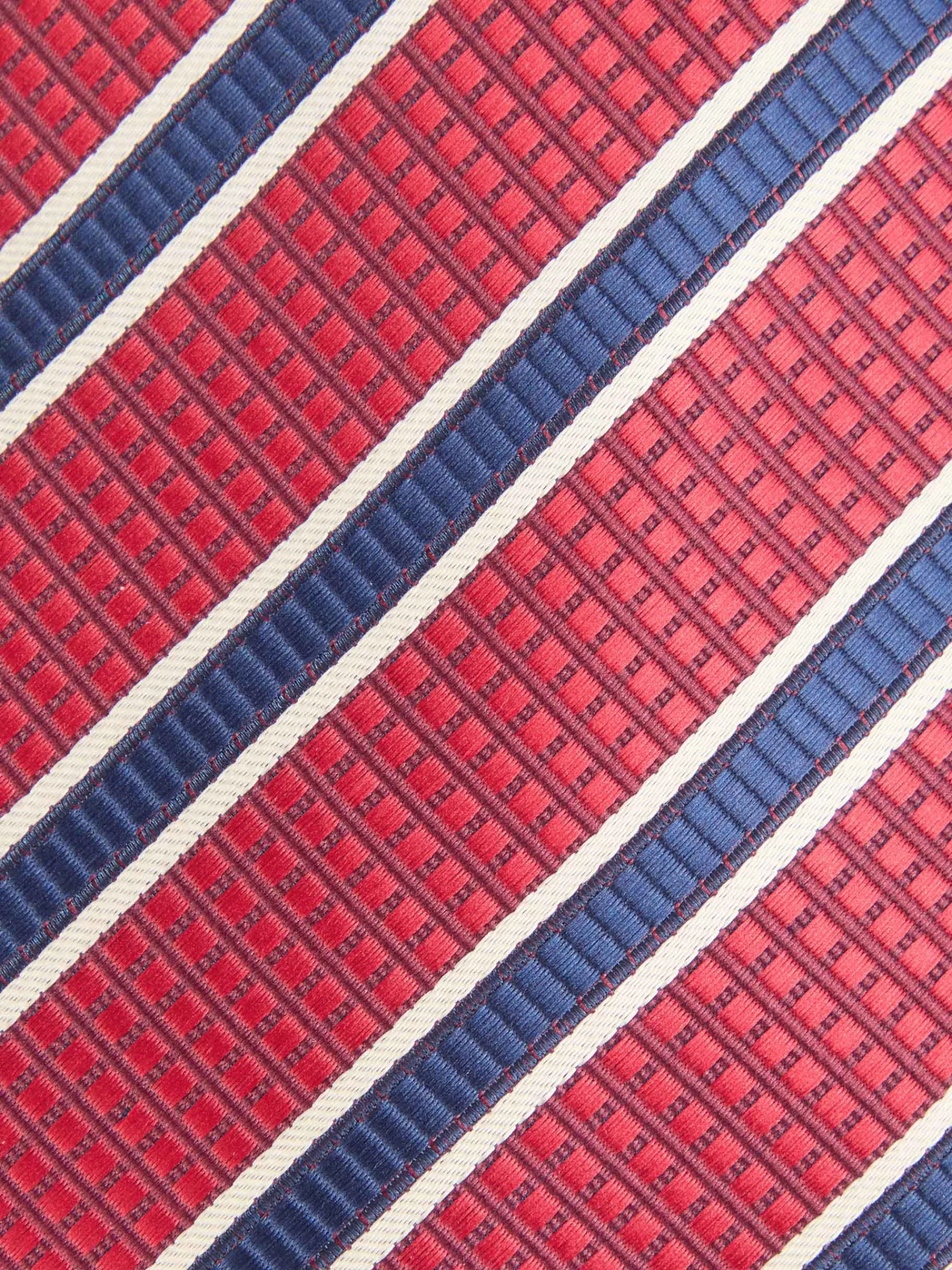 Corbata estilo jacquard con diseño estampado a contraste confeccionada en 100% poliéster. Cuenta con el logo de la marca grabado en el interior.