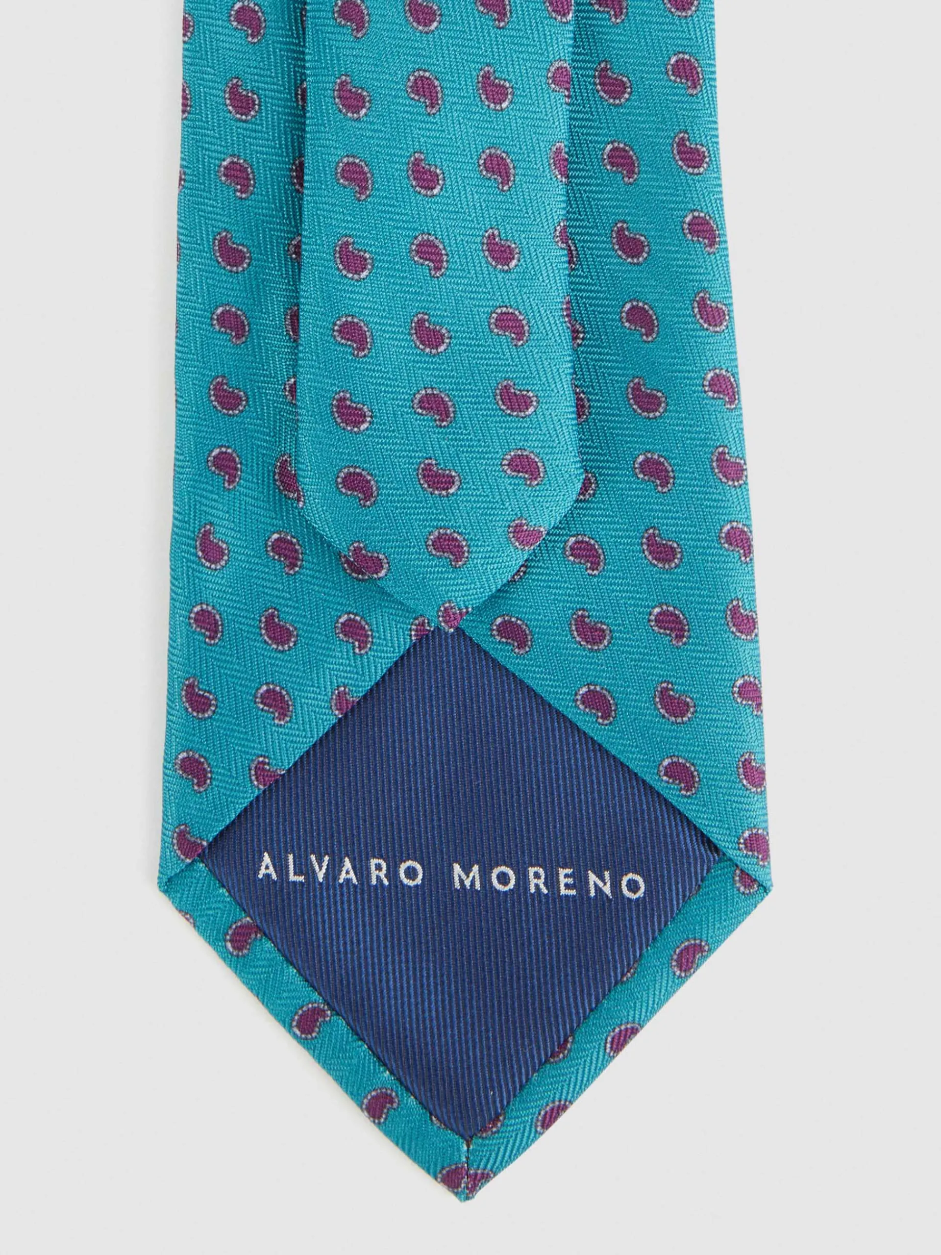 Corbata con diseño estampado personalizado confeccionada en 100% poliéster. Cuenta con el logo de la marca grabado en el interior.