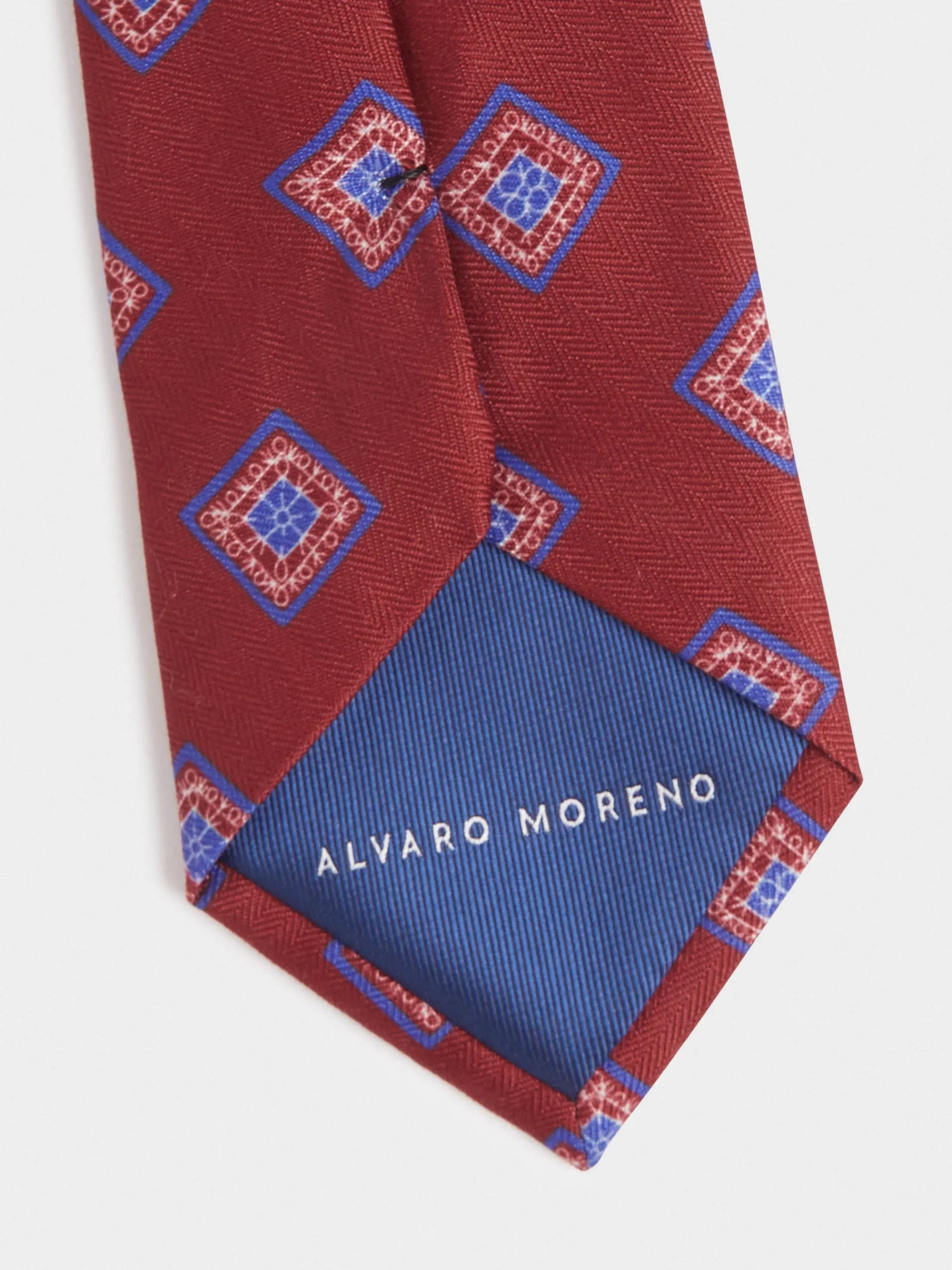 Corbata con diseño estampado personalizado confeccionada en 100% poliéster. Cuenta con el logo de la marca grabado en el interior.