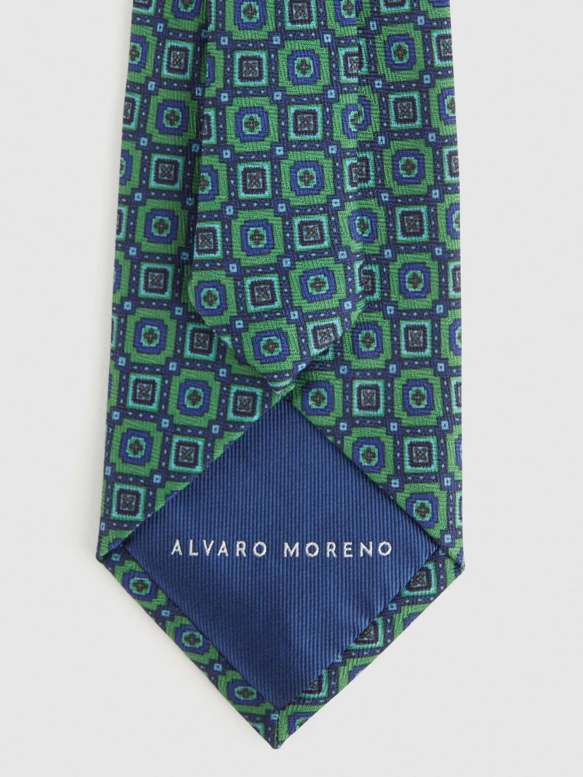 Corbata con diseño estampado personalizado confeccionada en 100% poliéster. Cuenta con el logo de la marca grabado en el interior.