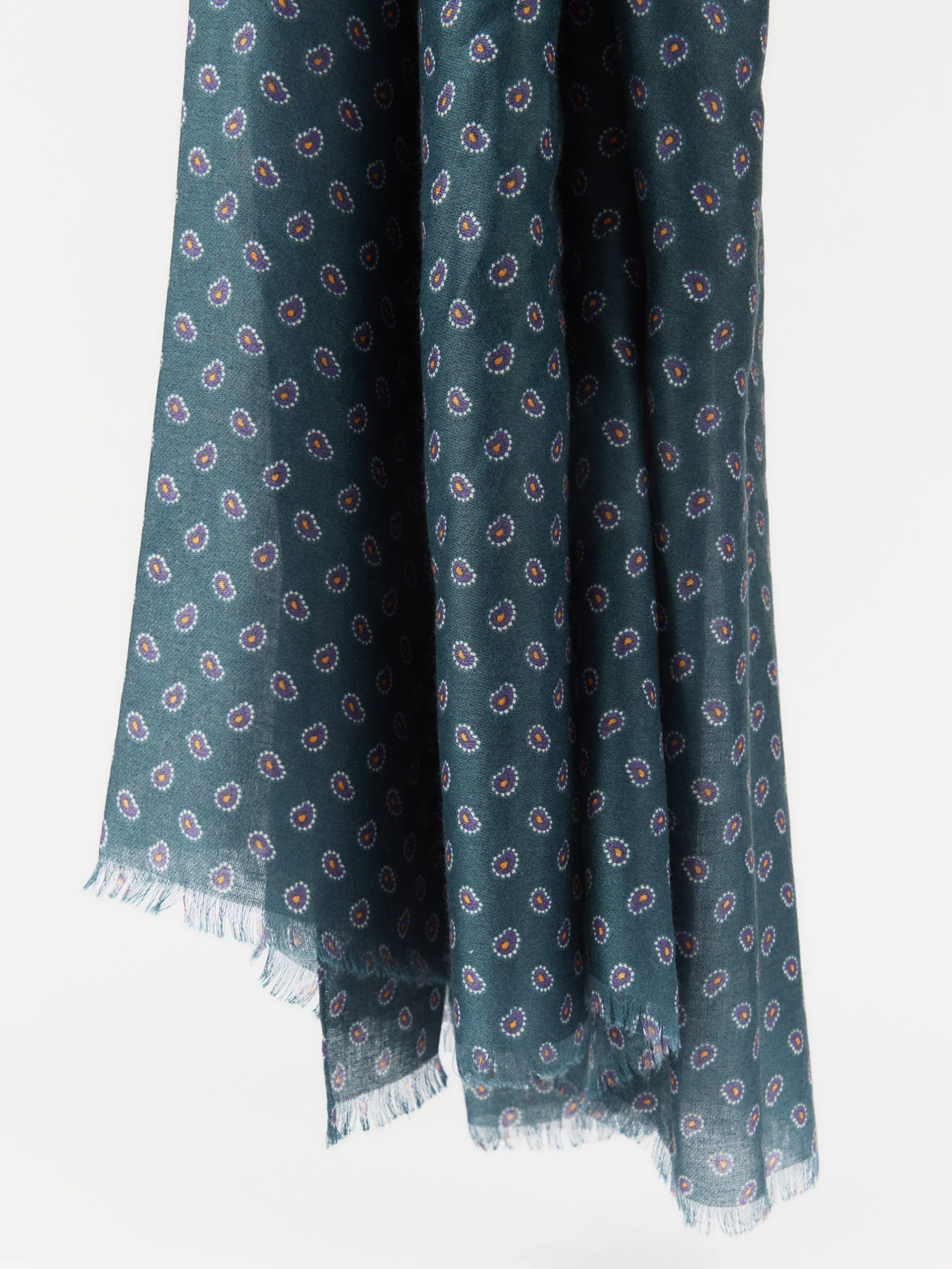 Foulard de diseño personalizado estampado confeccionado en tejido suave y cálido. Terminación con flecos.