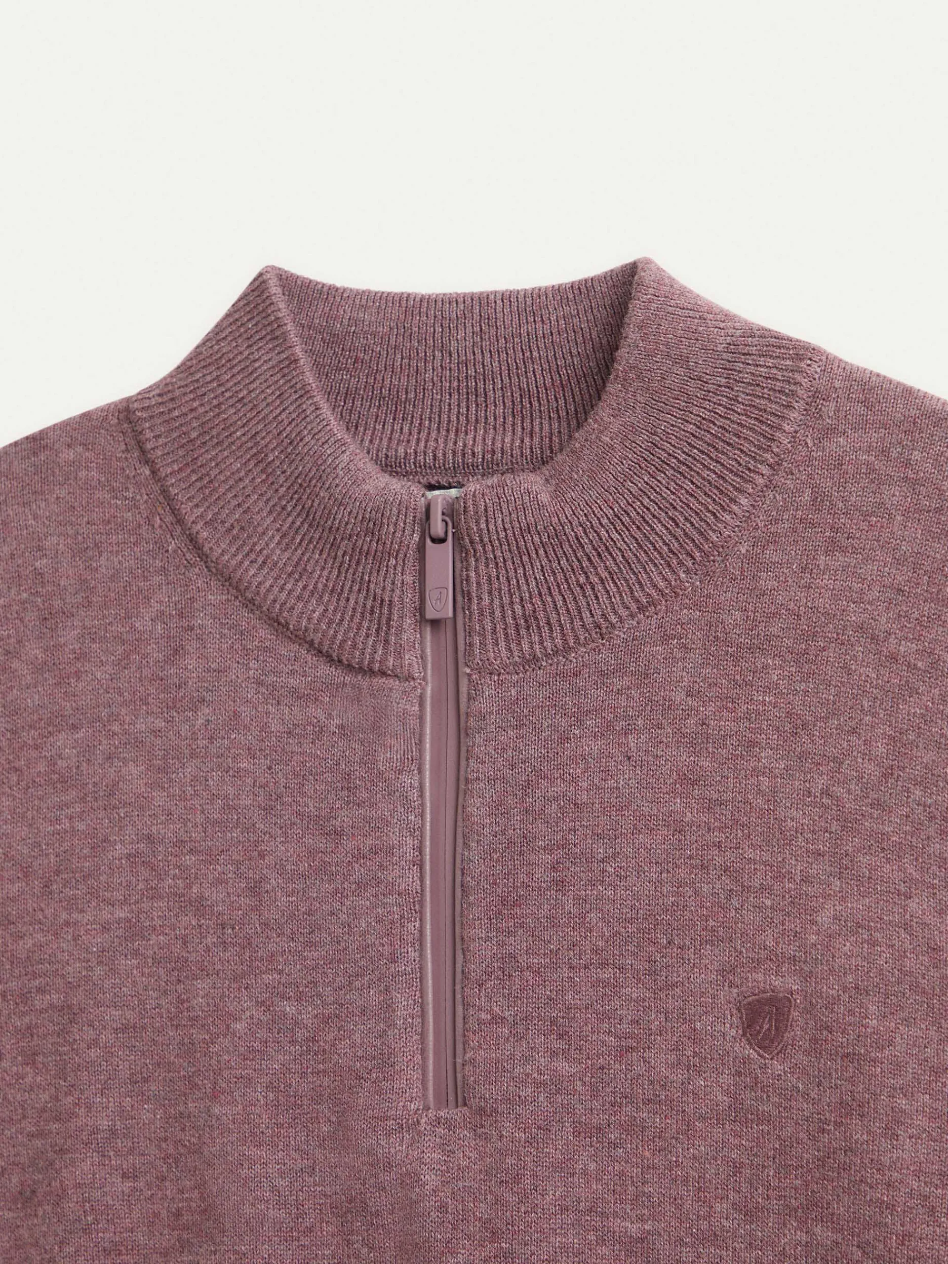 Jersey de corte regular confeccionado en algodón. Cuello alto con medio cierre de cremallera. Logo bordado en el frontal al tono. Cuello, puños y bajo en acabado elástico.