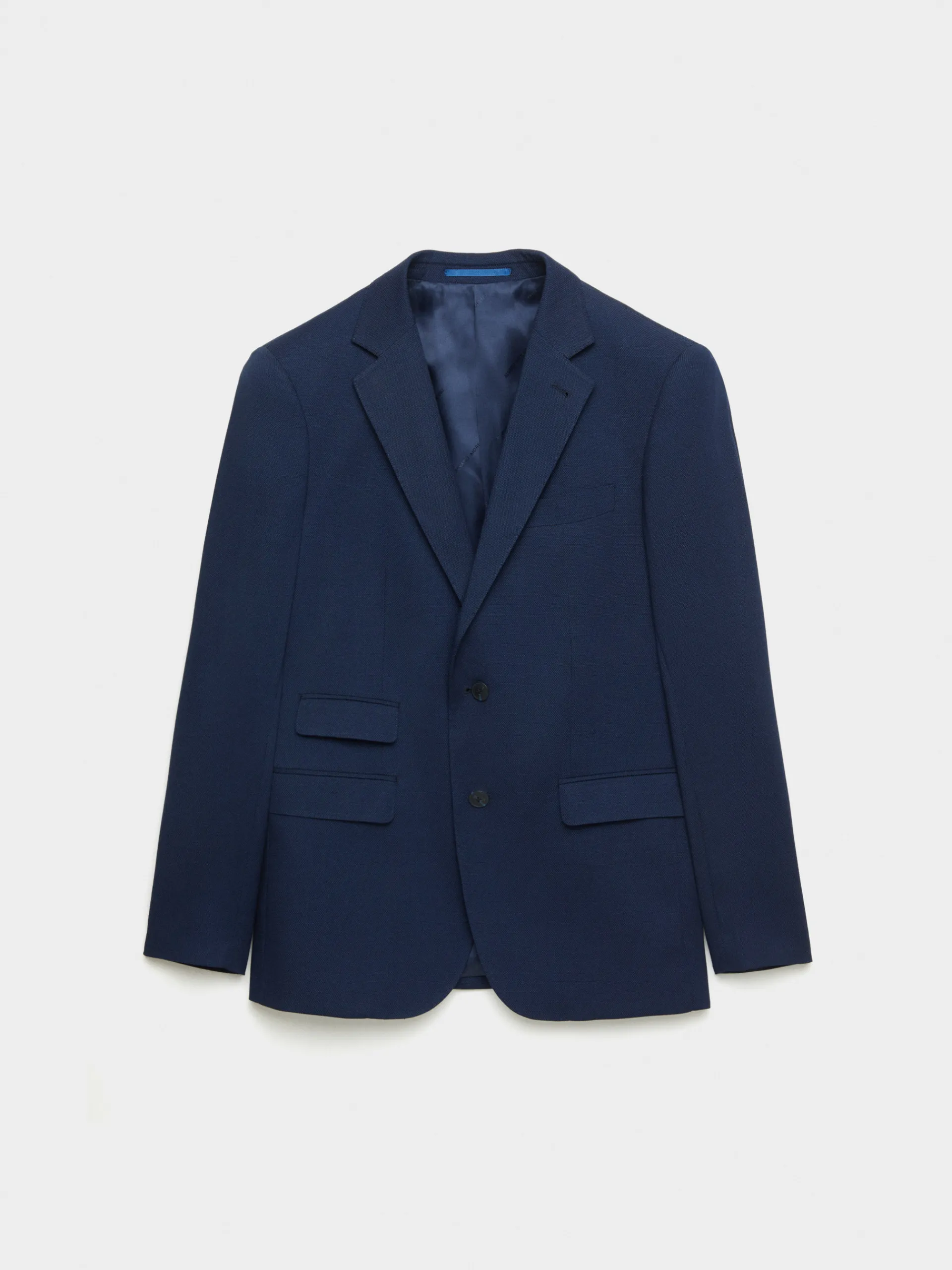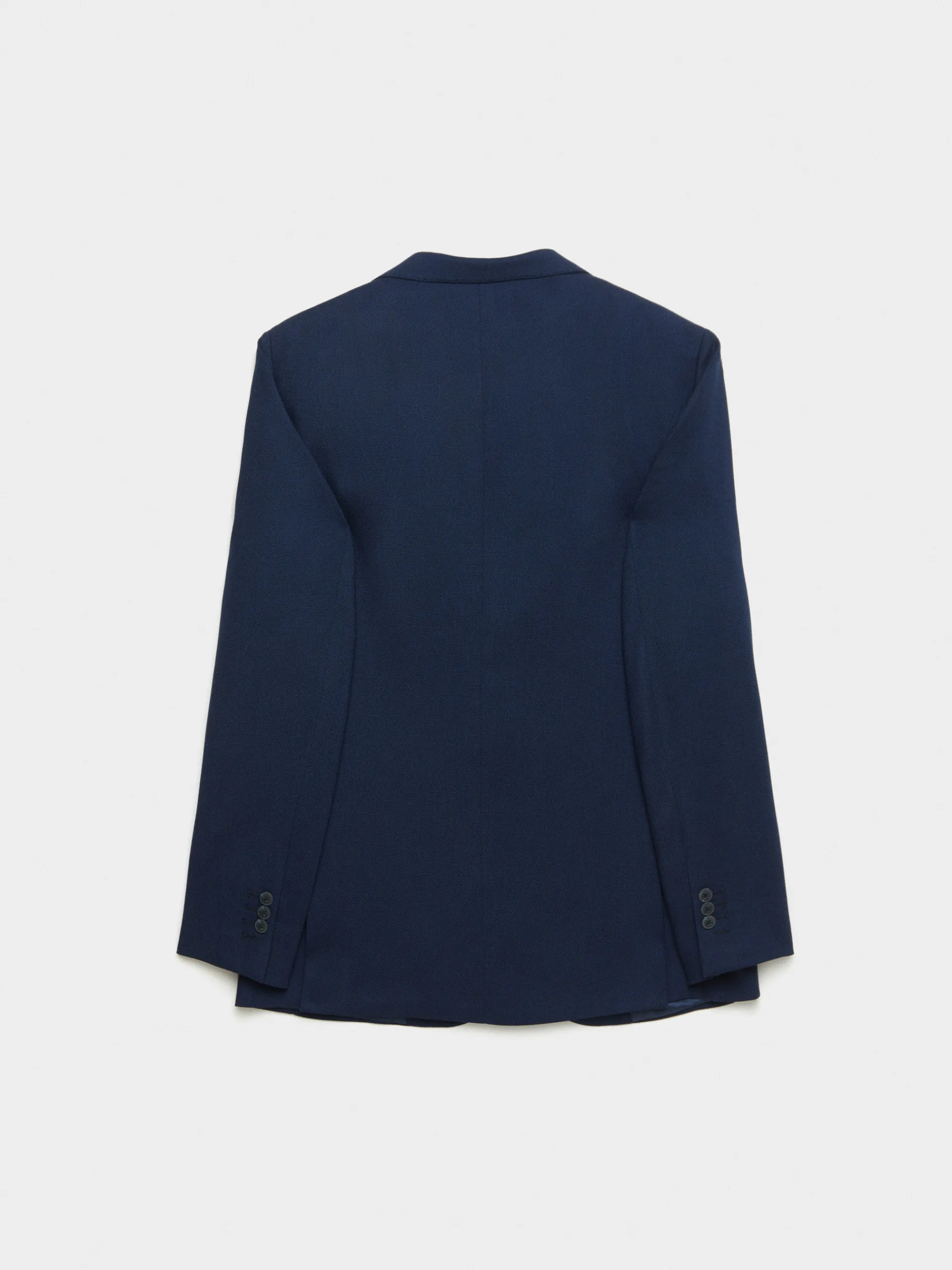 Americana con cuello y solapa en tejido de ojo de perdiz. Cierre central mediante botones, bolsillo de ojal en el pecho, tres bolsillos de solapa en la cintura y puños con botones decorativos. Interior forrado y con bolsillos.