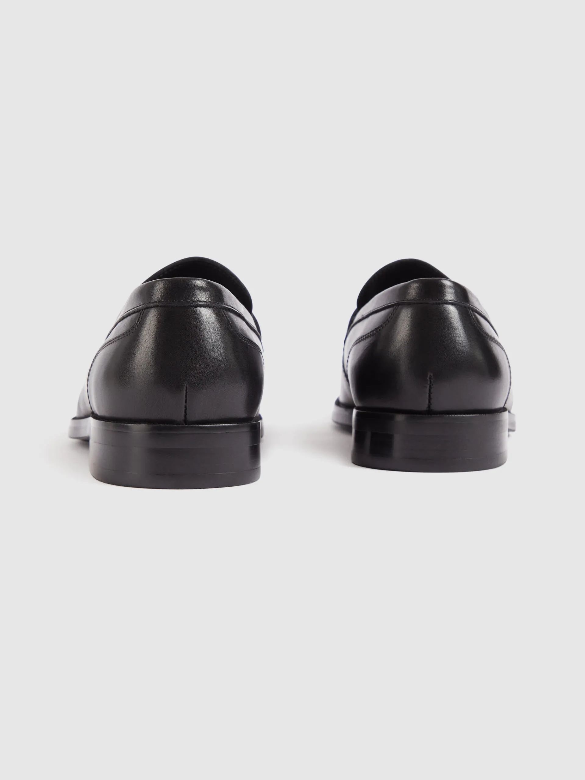 Mocasines confeccionados en piel. Cuenta con detalle en forma de antifaz en el frontal, puntera redonda y suela cosida al corte con dos partes laminadas en goma antideslizante.