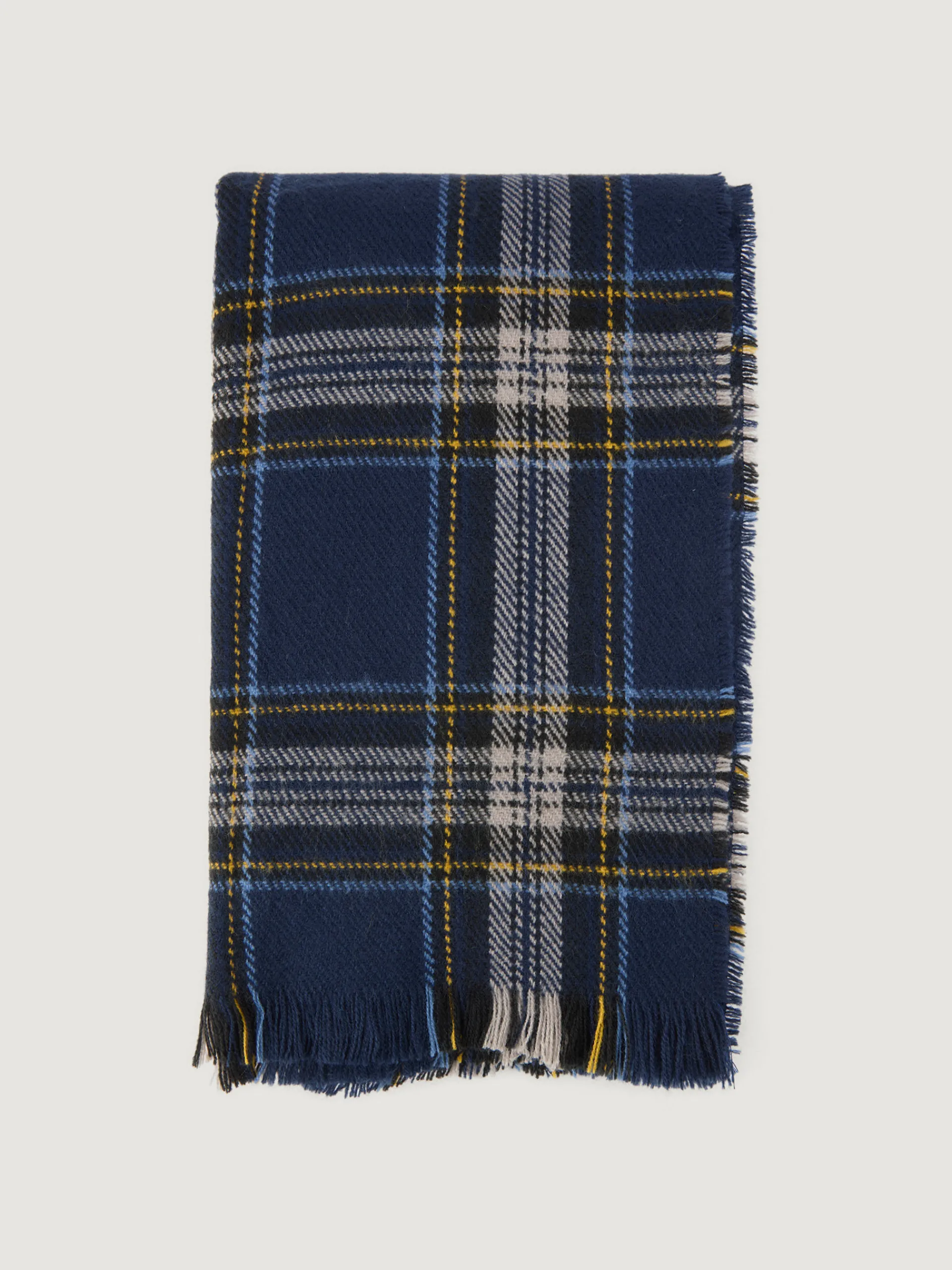 Bufandas con diseño de cuadros confeccionada en 100% acrílico. Terminación de flecos decorativos y tacto suave.