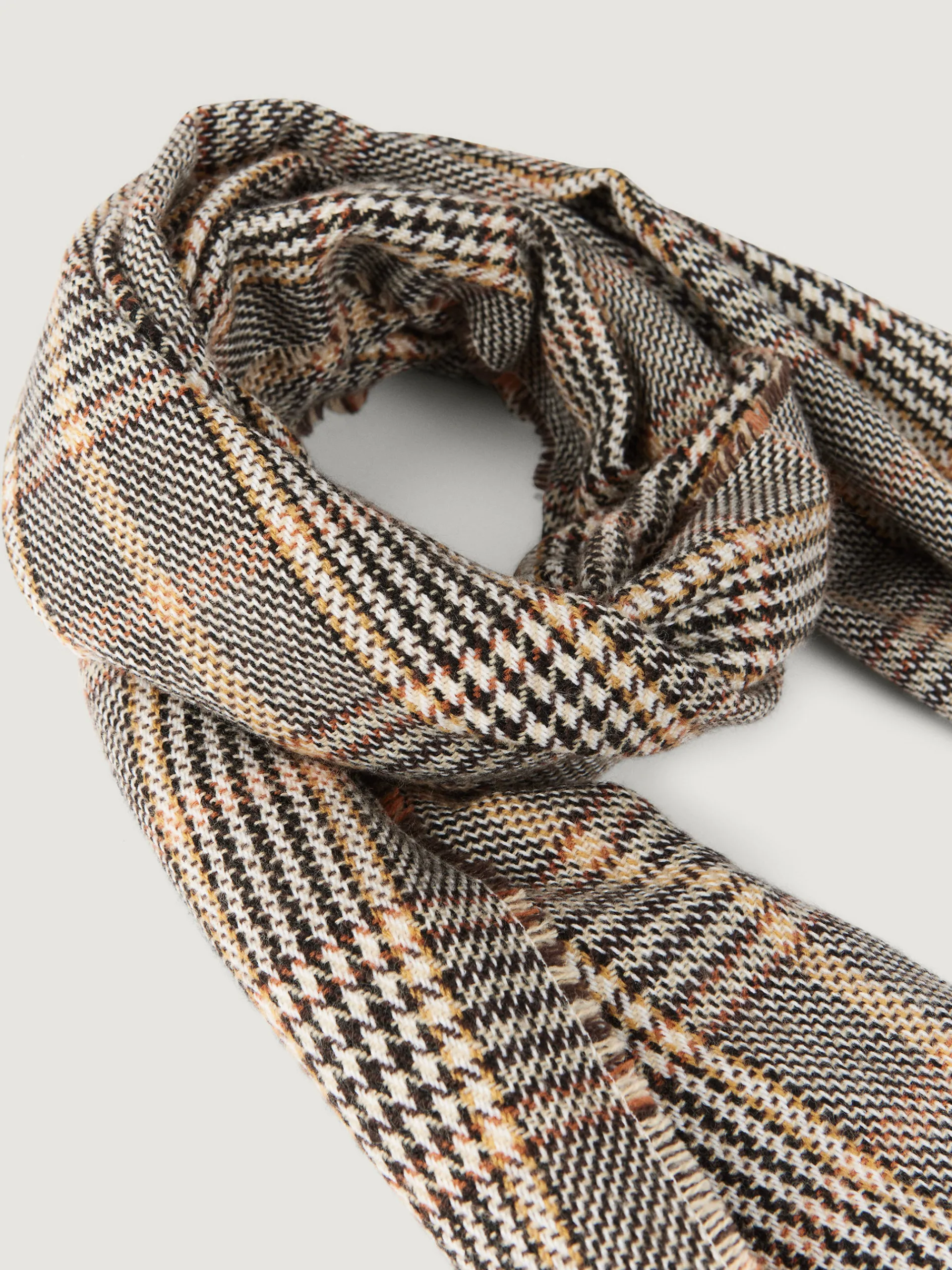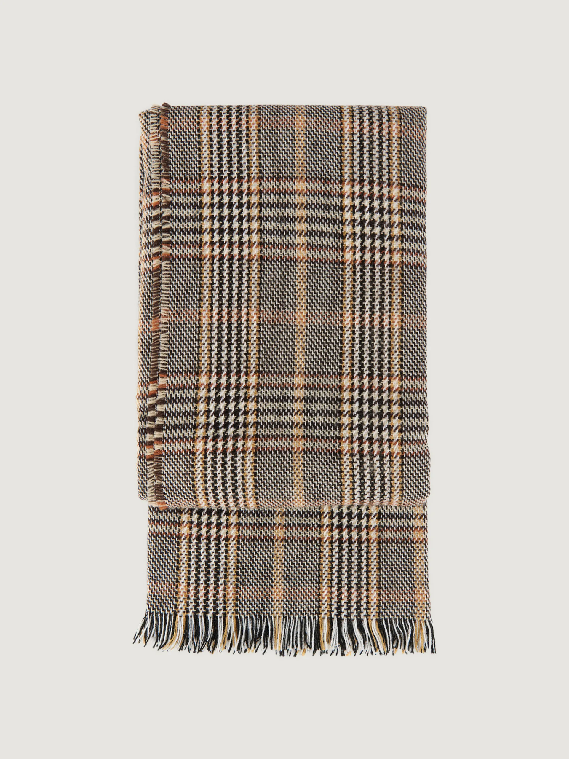 Bufandas con diseño de cuadros confeccionada en 100% acrílico. Terminación de flecos decorativos y tacto suave.
