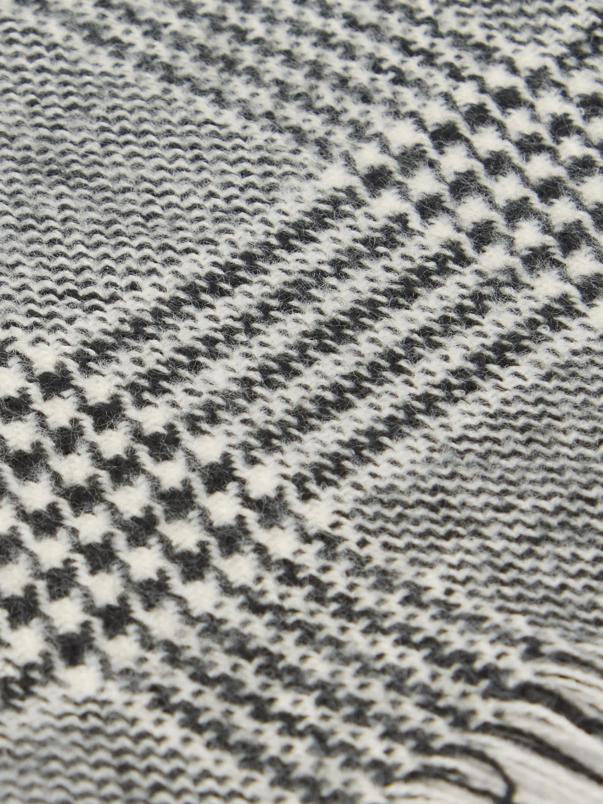 Bufandas con diseño de cuadros confeccionada en 100% acrílico. Terminación de flecos decorativos y tacto suave.