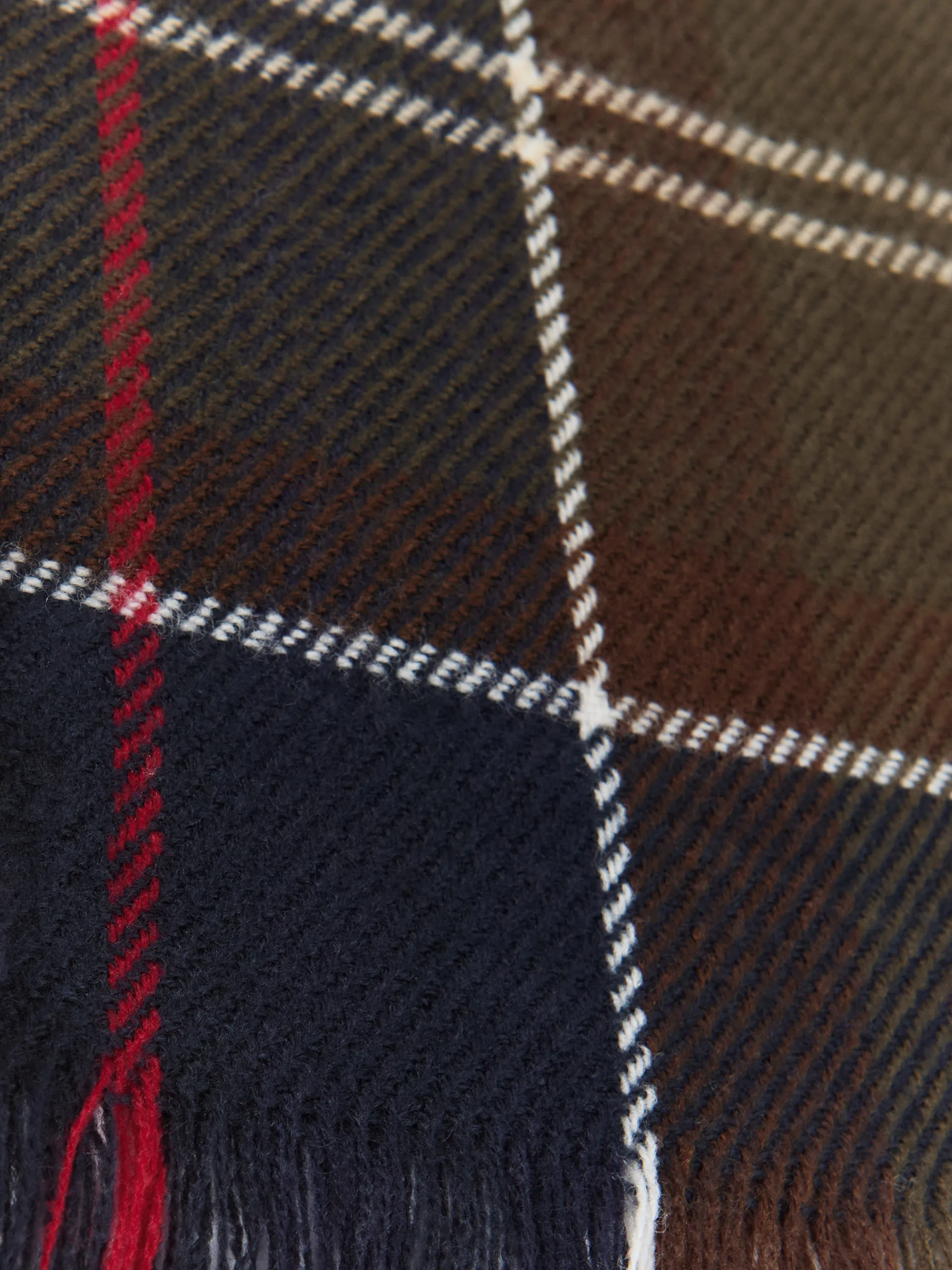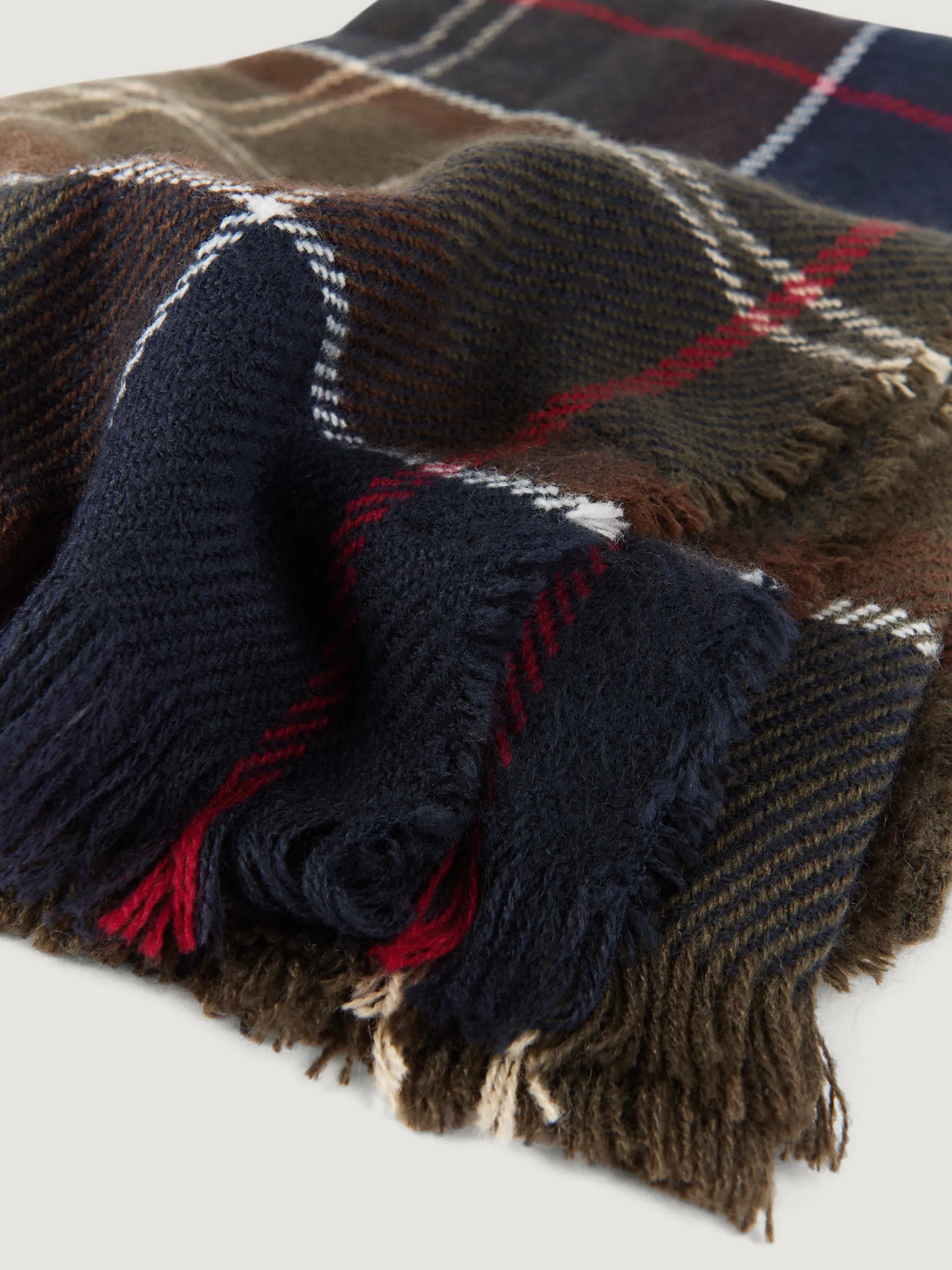 Bufandas con diseño de cuadros confeccionada en 100% acrílico. Terminación de flecos decorativos y tacto suave.