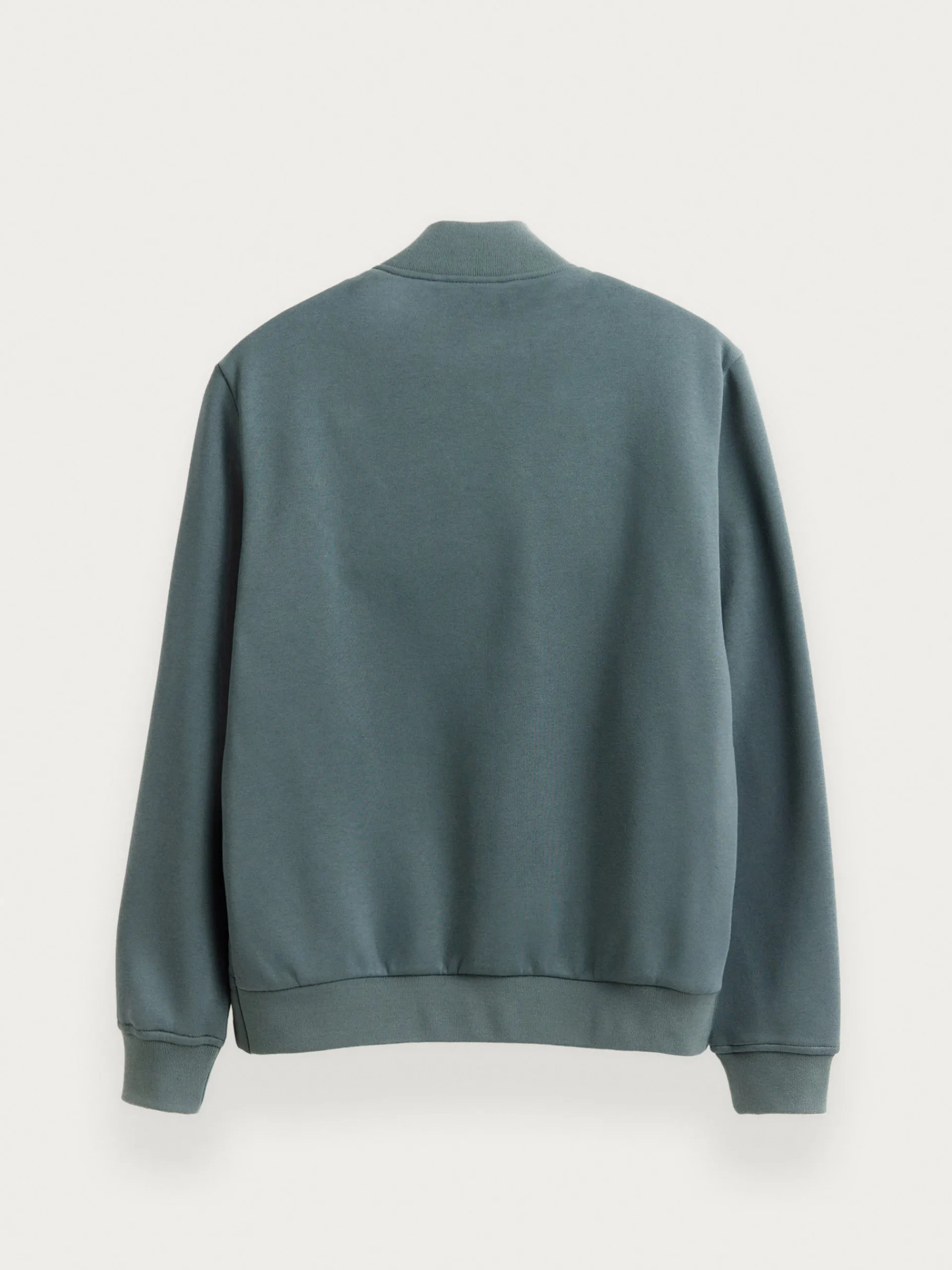 Cazadora estilo bomber con cuello y mangas en tejido de punto. Cuenta en su parte delantera con cierre central mediante cremallera, dos bolsillos y parche con el logo de la marca grabado en el pecho.