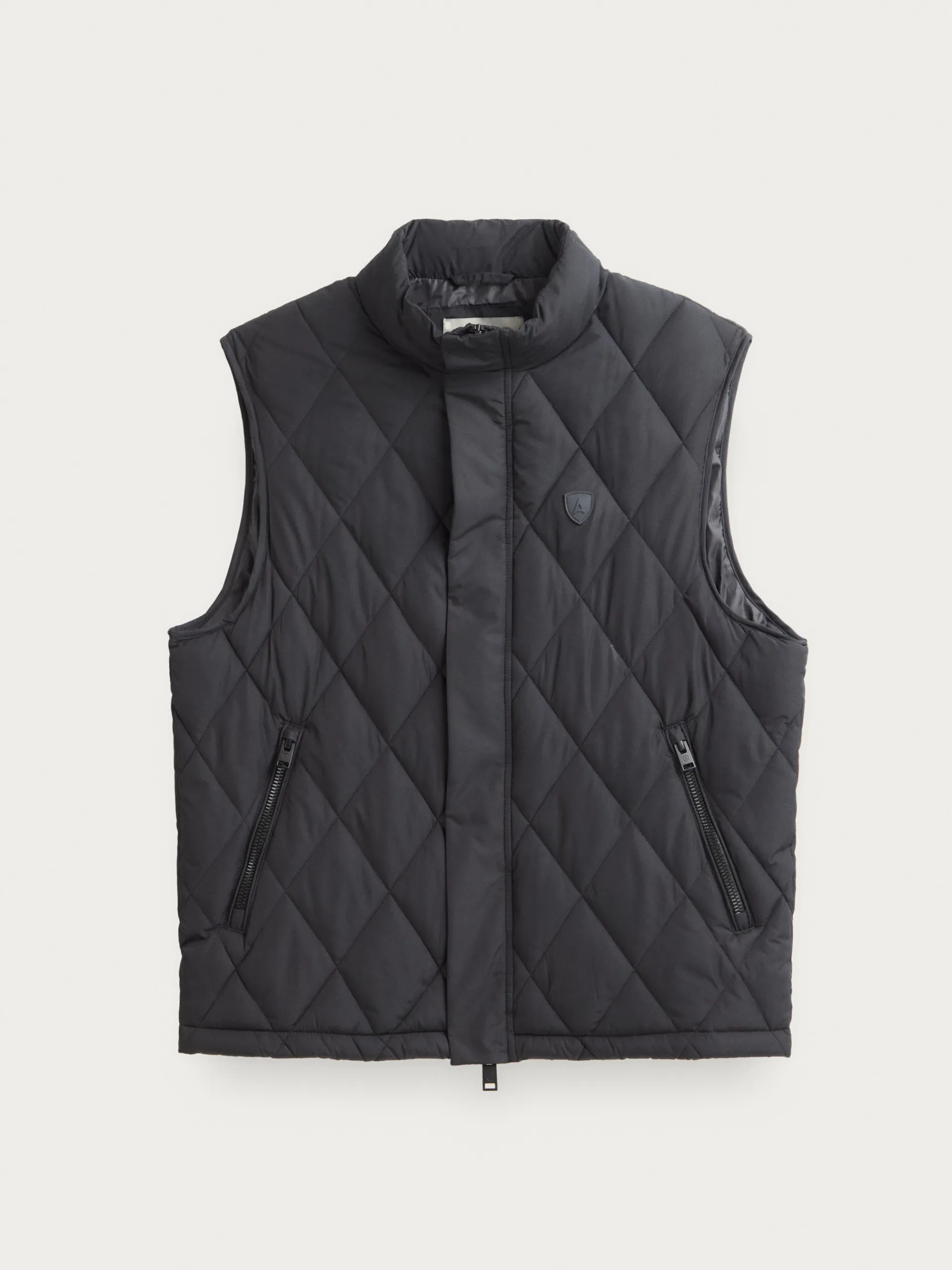 Chaleco con cuello alto y tejido en forma de rombos. Cuenta con cierre central mediante doble cremallera oculta por tapeta de botones a presión, logo de la marca grabado al tono en el frontal y dos bolsillos a la altura de la cintura. Corte regular fit.