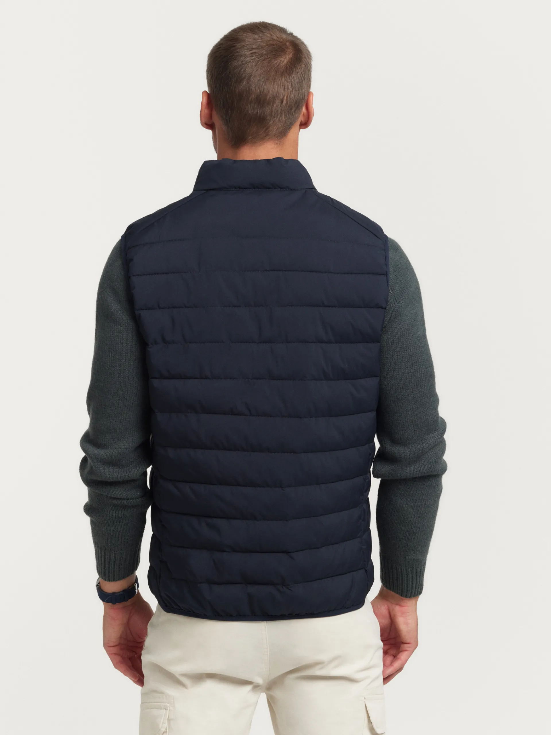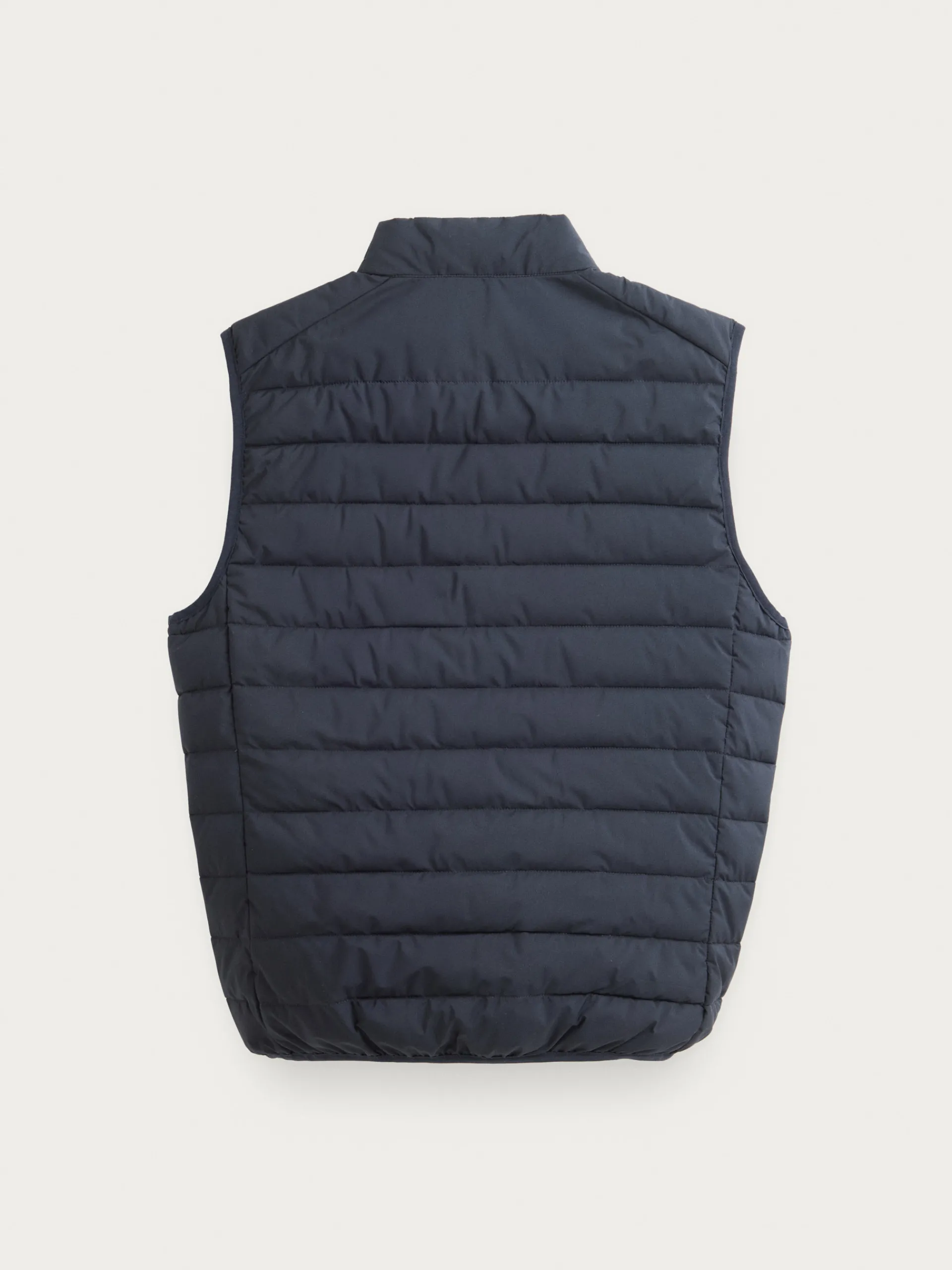 Chaleco con cierre central mediante cremallera y dos bolsillos en la cintura. Cuenta con cuello subido, logo grabado en el frontal y sisa y cintura en punto elástico. Corte regular fit.