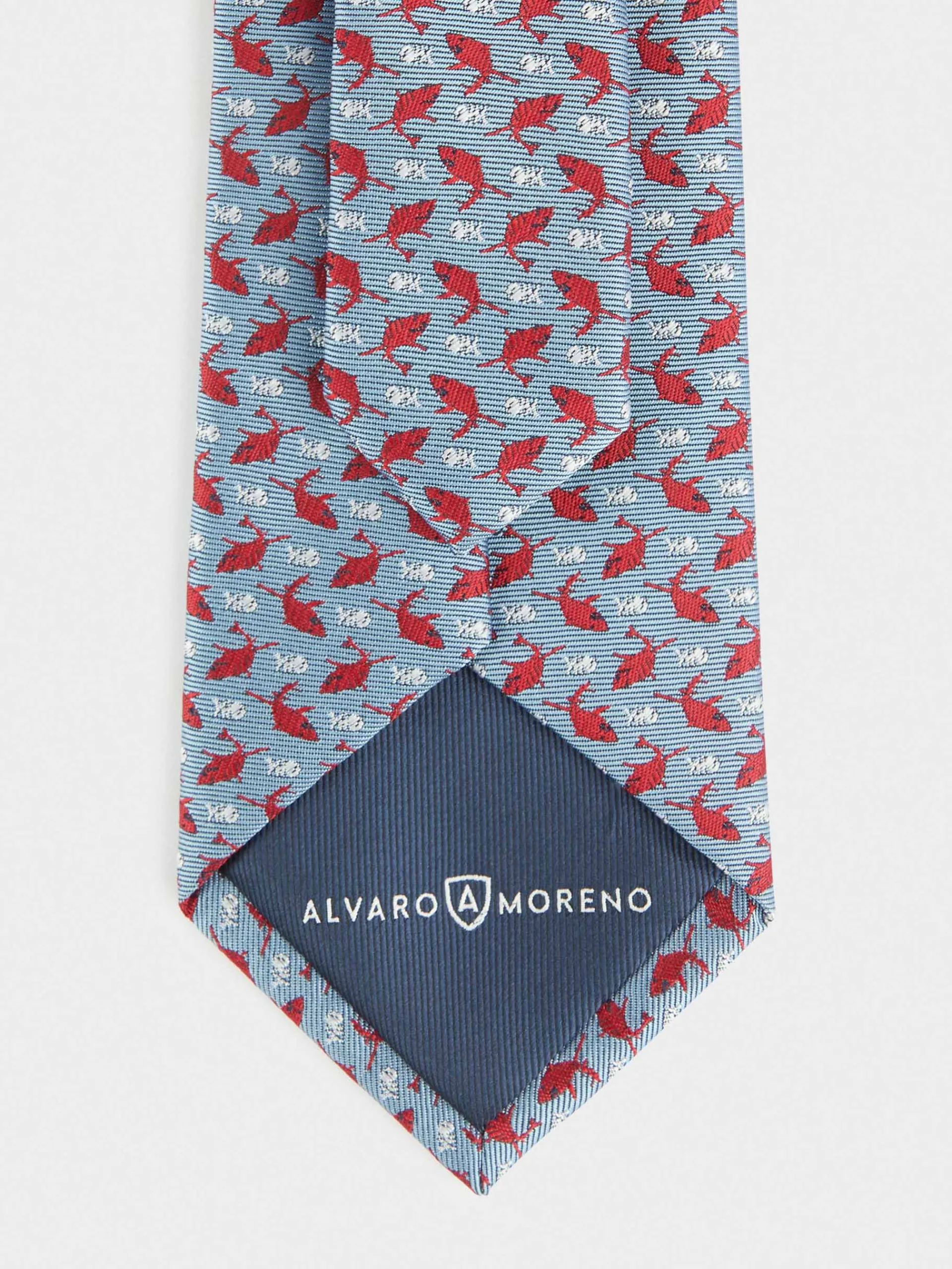 Corbata estilo jacquard con diseño estampado a contraste confeccionada en 100% poliéster. Cuenta con el logo de la marca grabado en el interior.