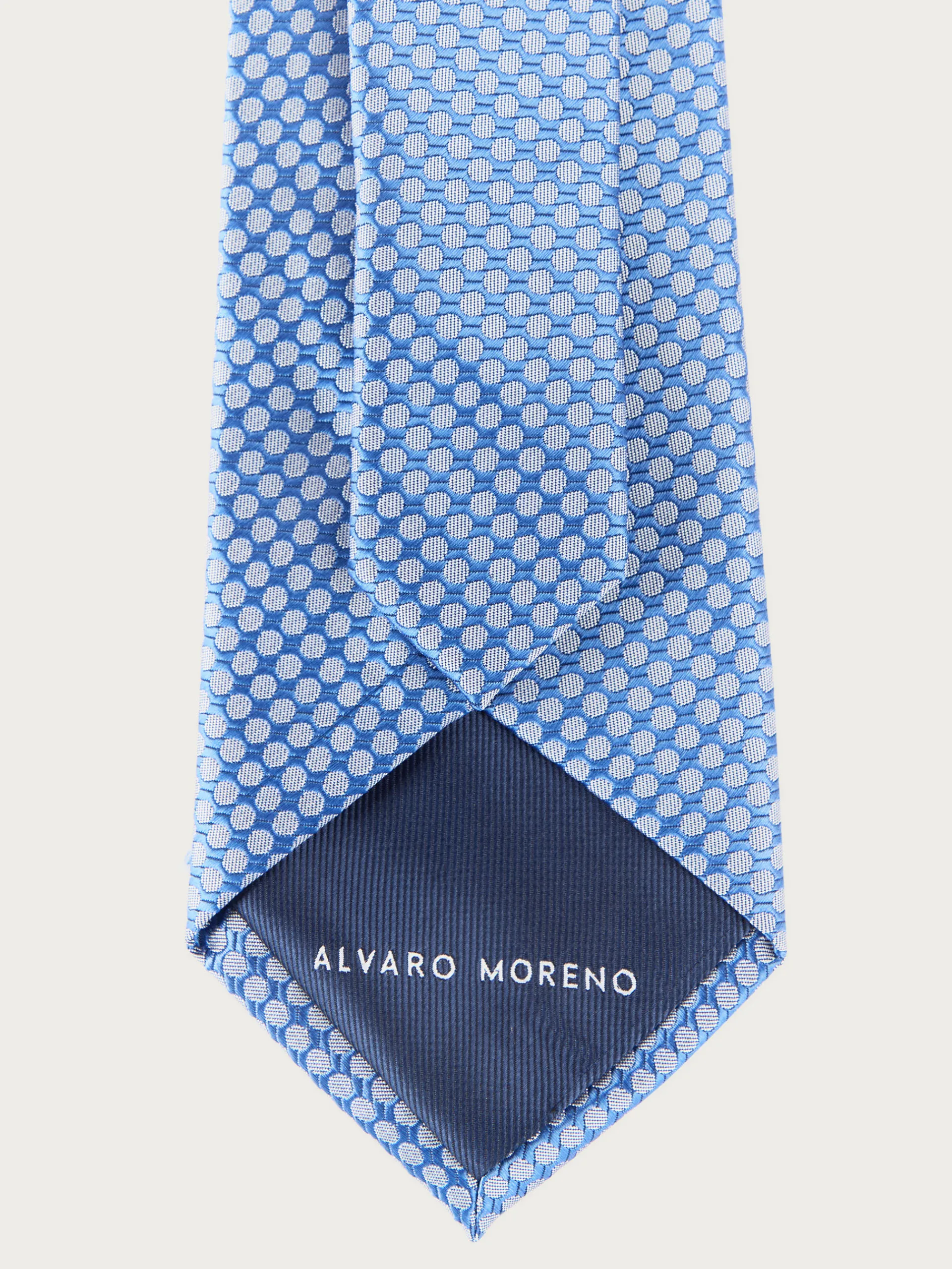Corbata estilo jacquard con diseño estampado a contraste confeccionada en 100% poliéster. Cuenta con el logo de la marca grabado en el interior.