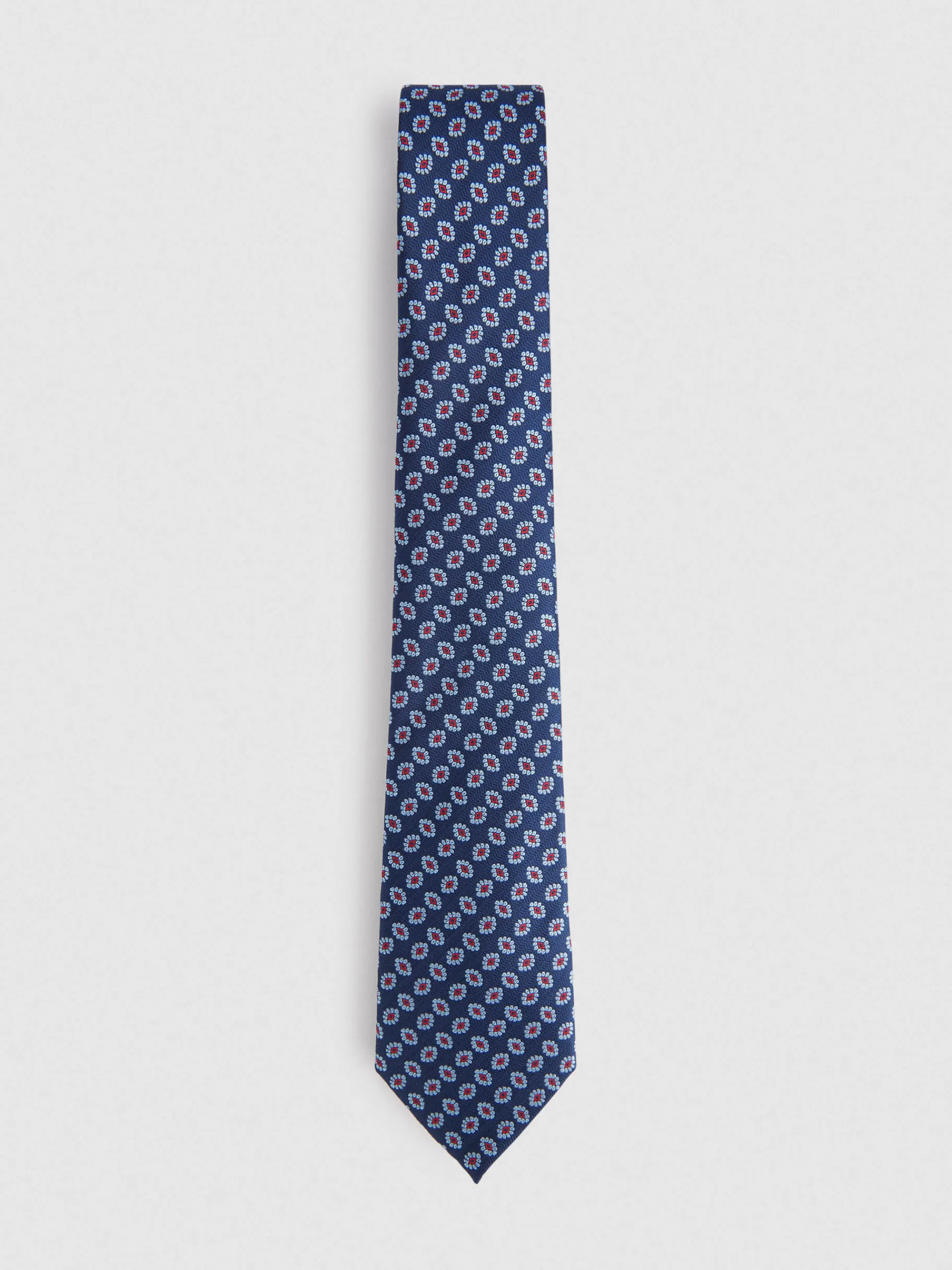 Corbata estilo jacquard con diseño estampado a contraste confeccionada en 100% poliéster. Cuenta con el logo de la marca grabado en el interior.