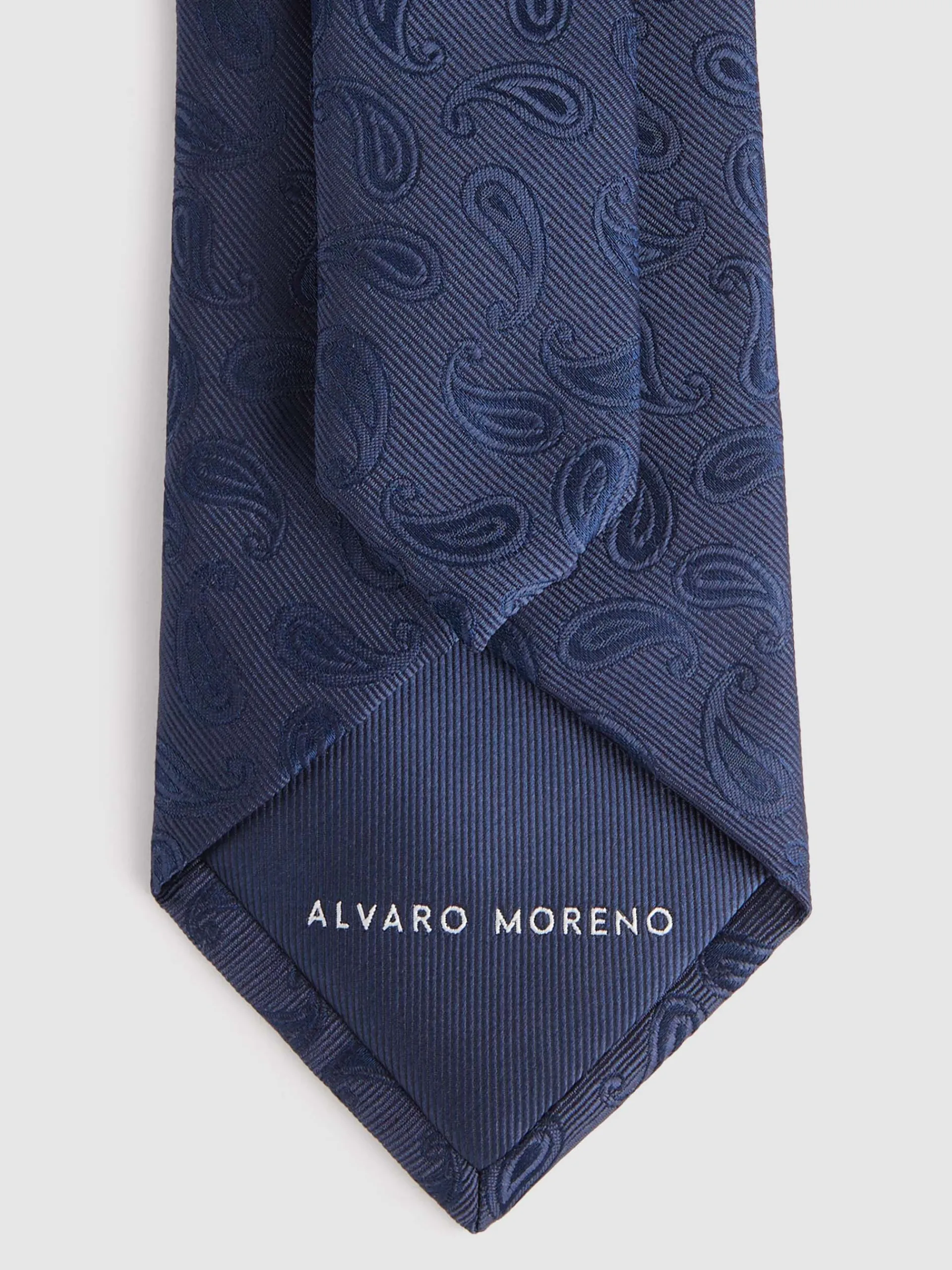 Corbata estilo jacquard con diseño estampado a contraste confeccionada en 100% poliéster. Cuenta con el logo de la marca grabado en el interior.