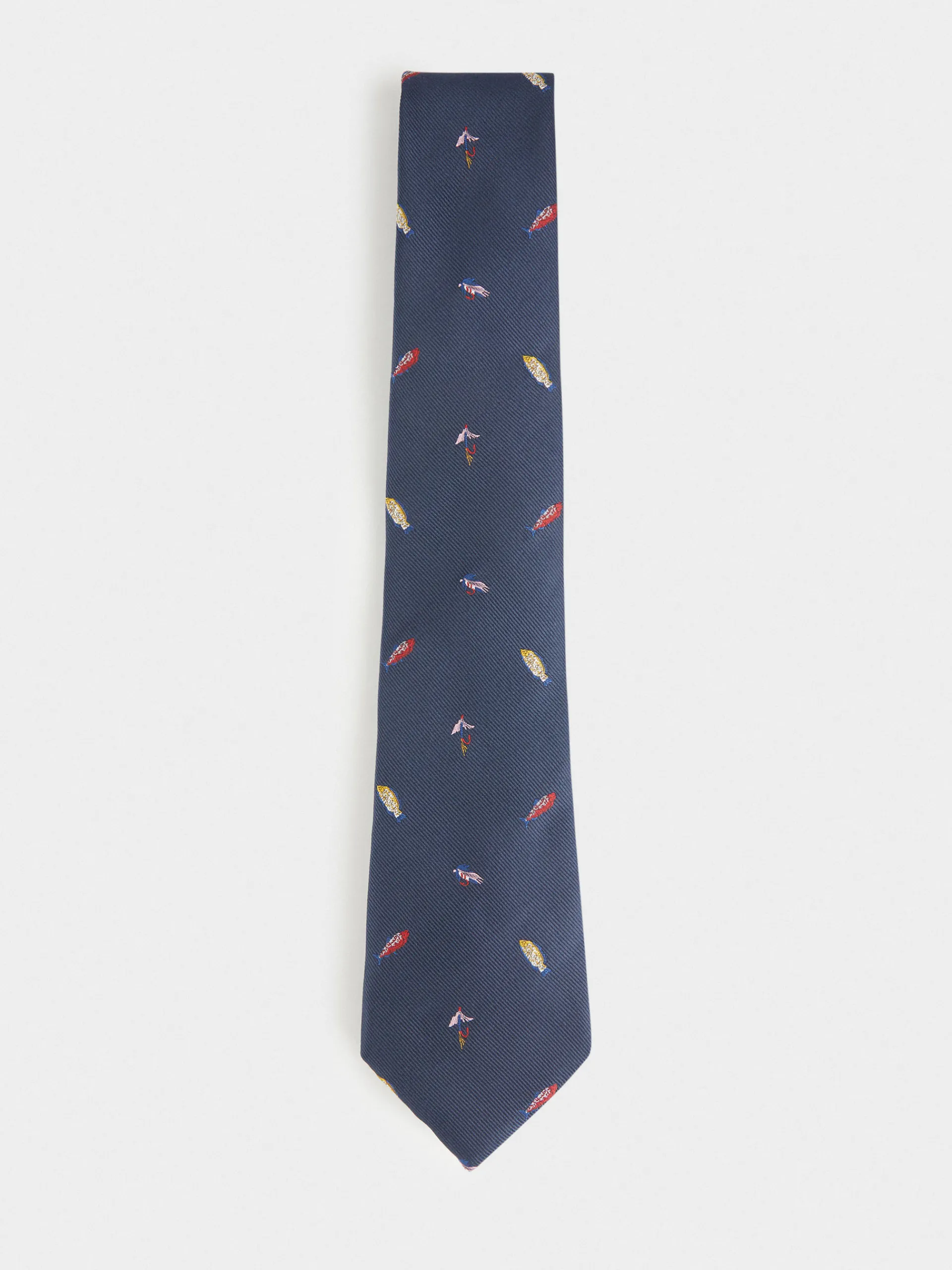 Corbata estilo jacquard con diseño estampado a contraste confeccionada en 100% poliéster. Cuenta con el logo de la marca grabado en el interior.