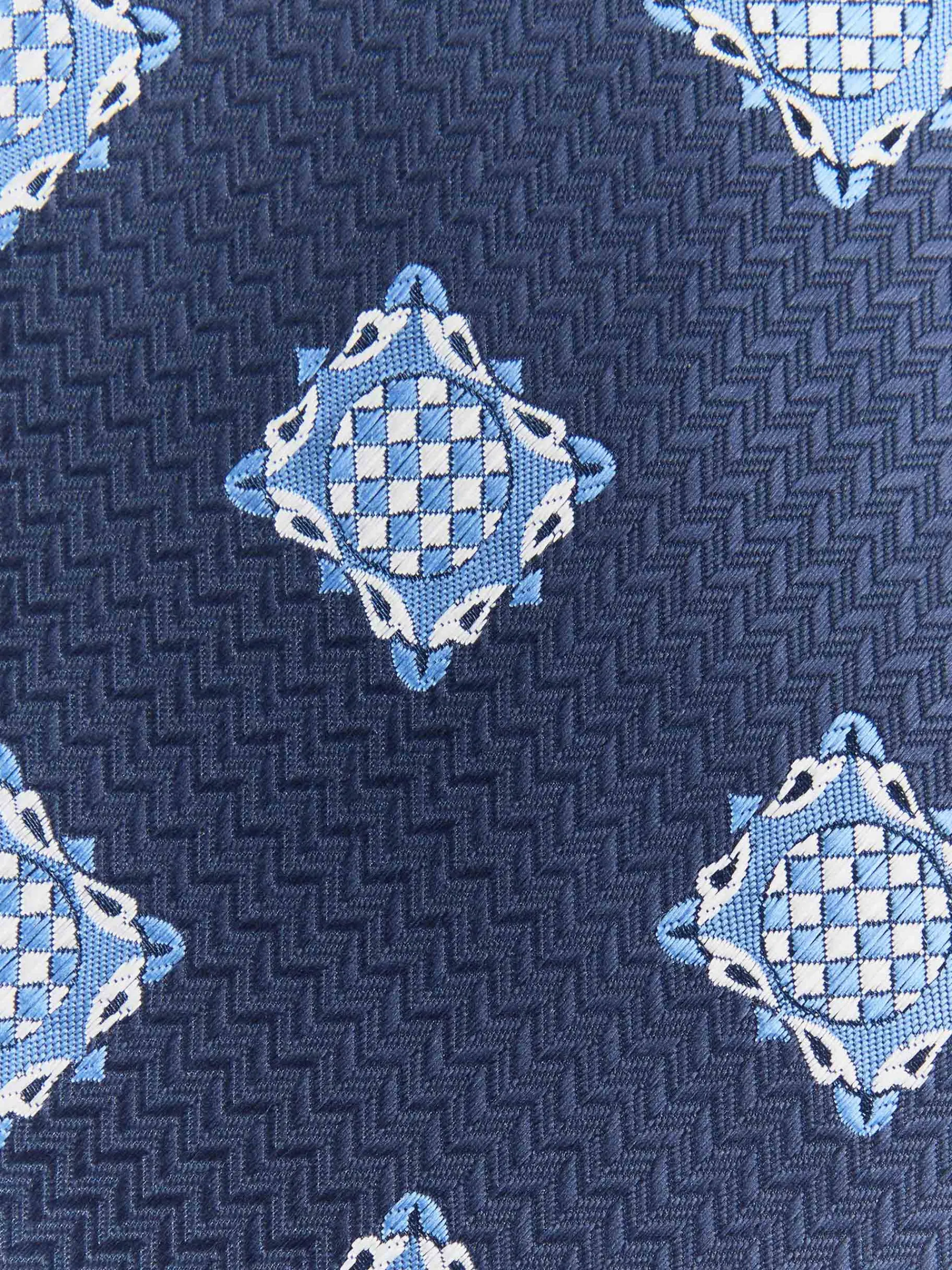 Corbata estilo jacquard con diseño estampado a contraste confeccionada en 100% poliéster. Cuenta con el logo de la marca grabado en el interior.