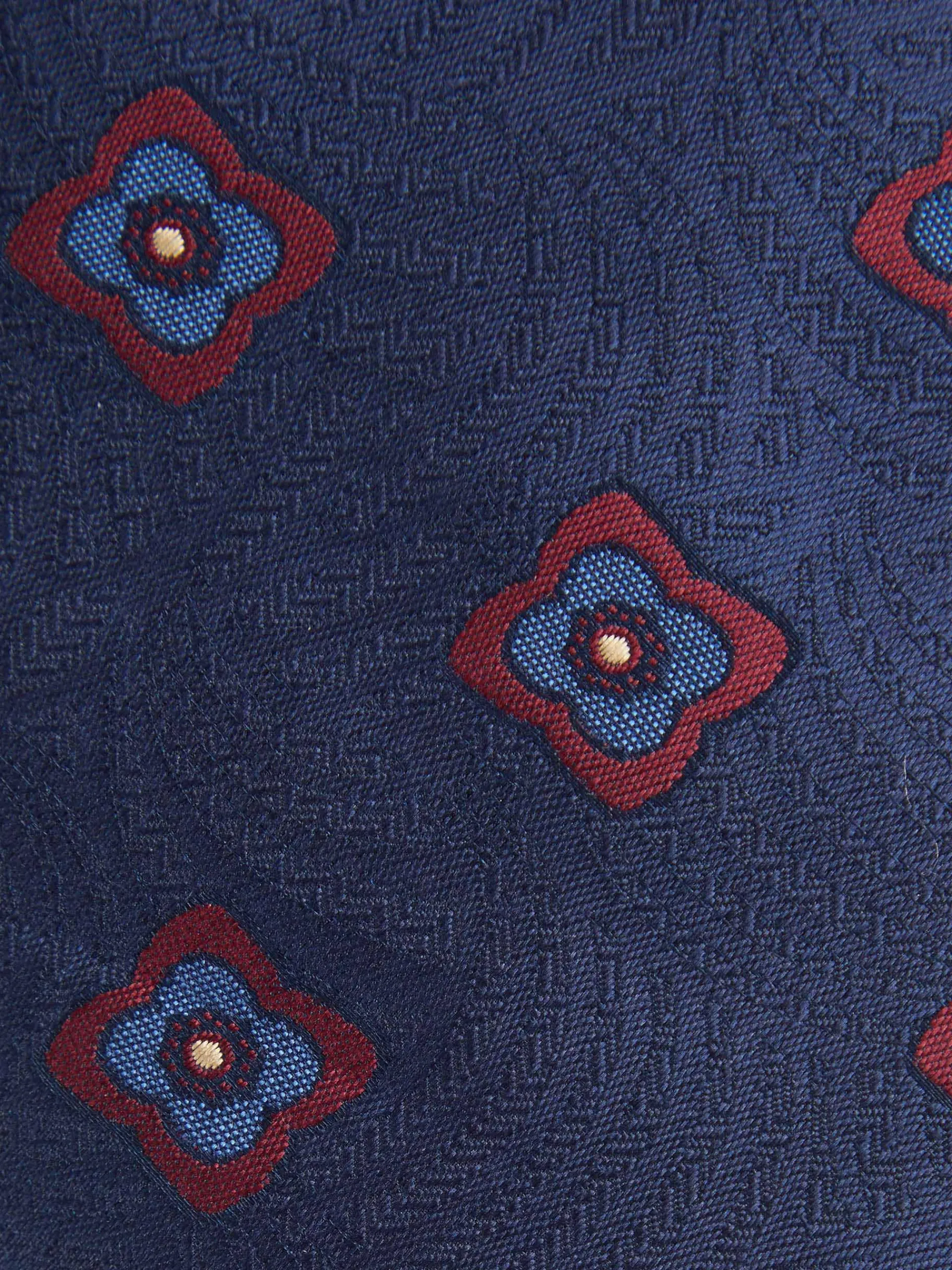 Corbata estilo jacquard con diseño estampado a contraste confeccionada en 100% poliéster. Cuenta con el logo de la marca grabado en el interior.