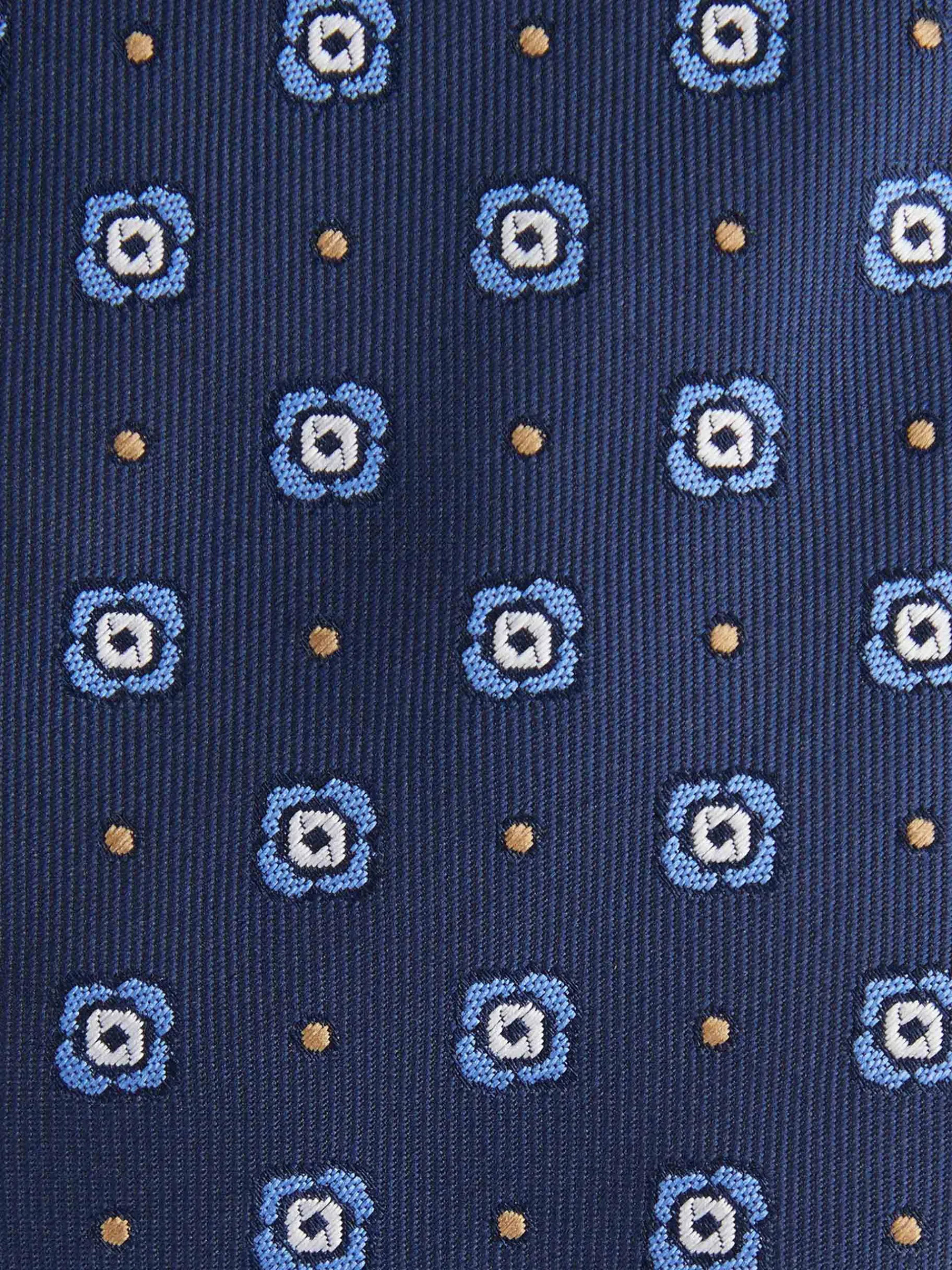 Corbata estilo jacquard con diseño estampado a contraste confeccionada en 100% poliéster. Cuenta con el logo de la marca grabado en el interior.
