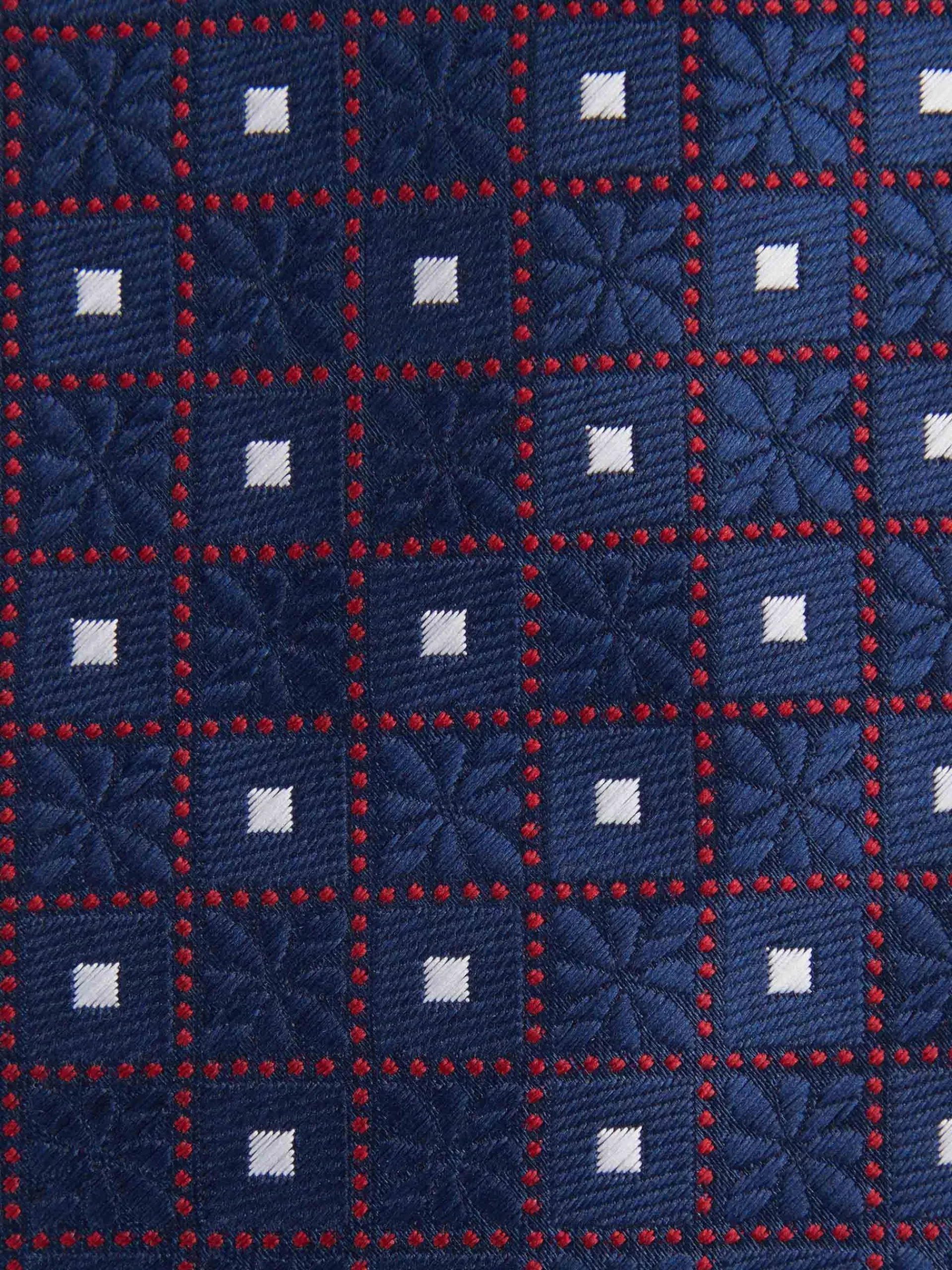 Corbata estilo jacquard con diseño estampado a contraste confeccionada en 100% poliéster. Cuenta con el logo de la marca grabado en el interior.
