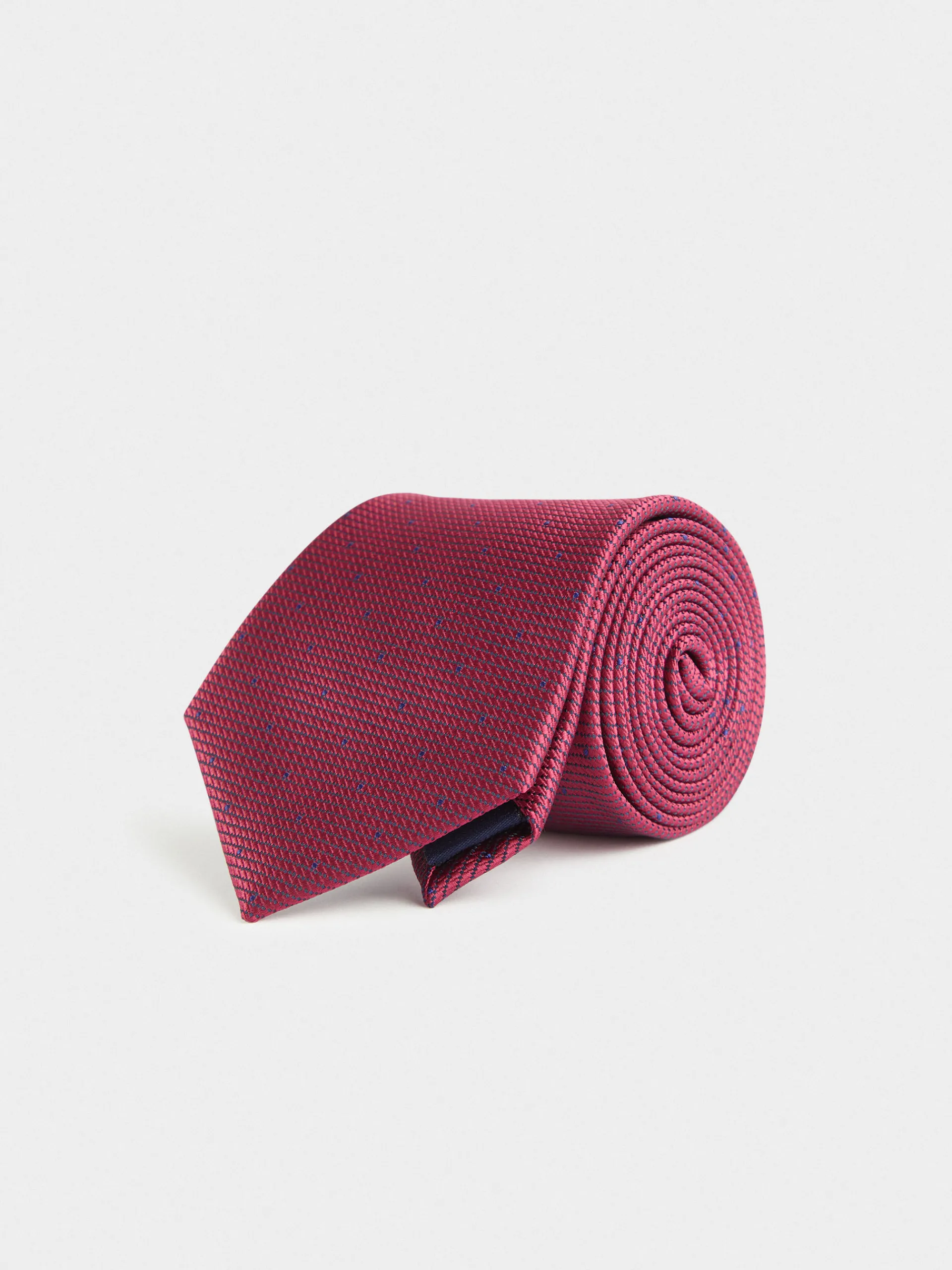 Corbata estilo jacquard con diseño estampado a contraste confeccionada en 100% poliéster. Cuenta con el logo de la marca grabado en el interior.