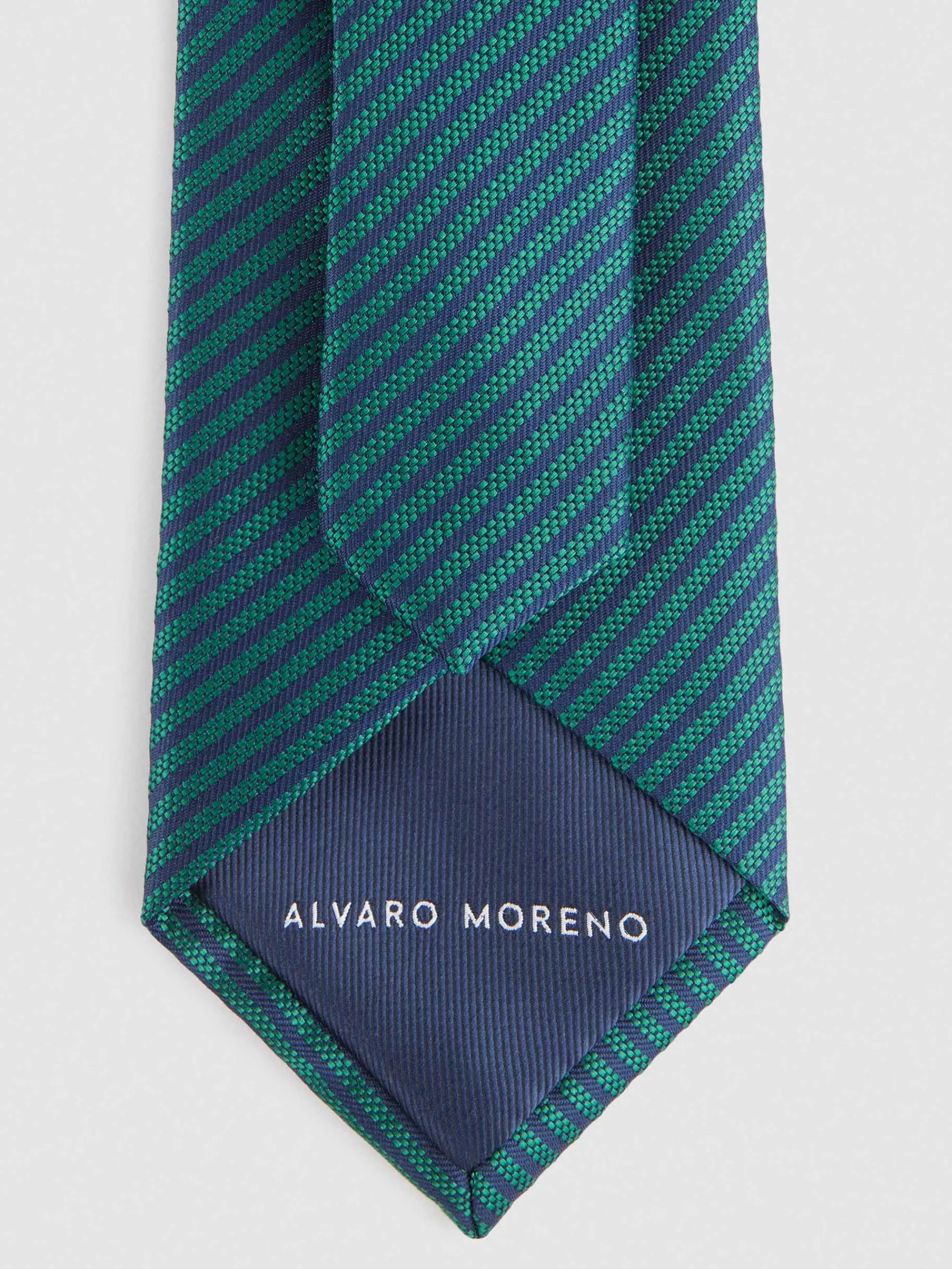 Corbata estilo jacquard con diseño estampado a contraste confeccionada en 100% poliéster. Cuenta con el logo de la marca grabado en el interior.