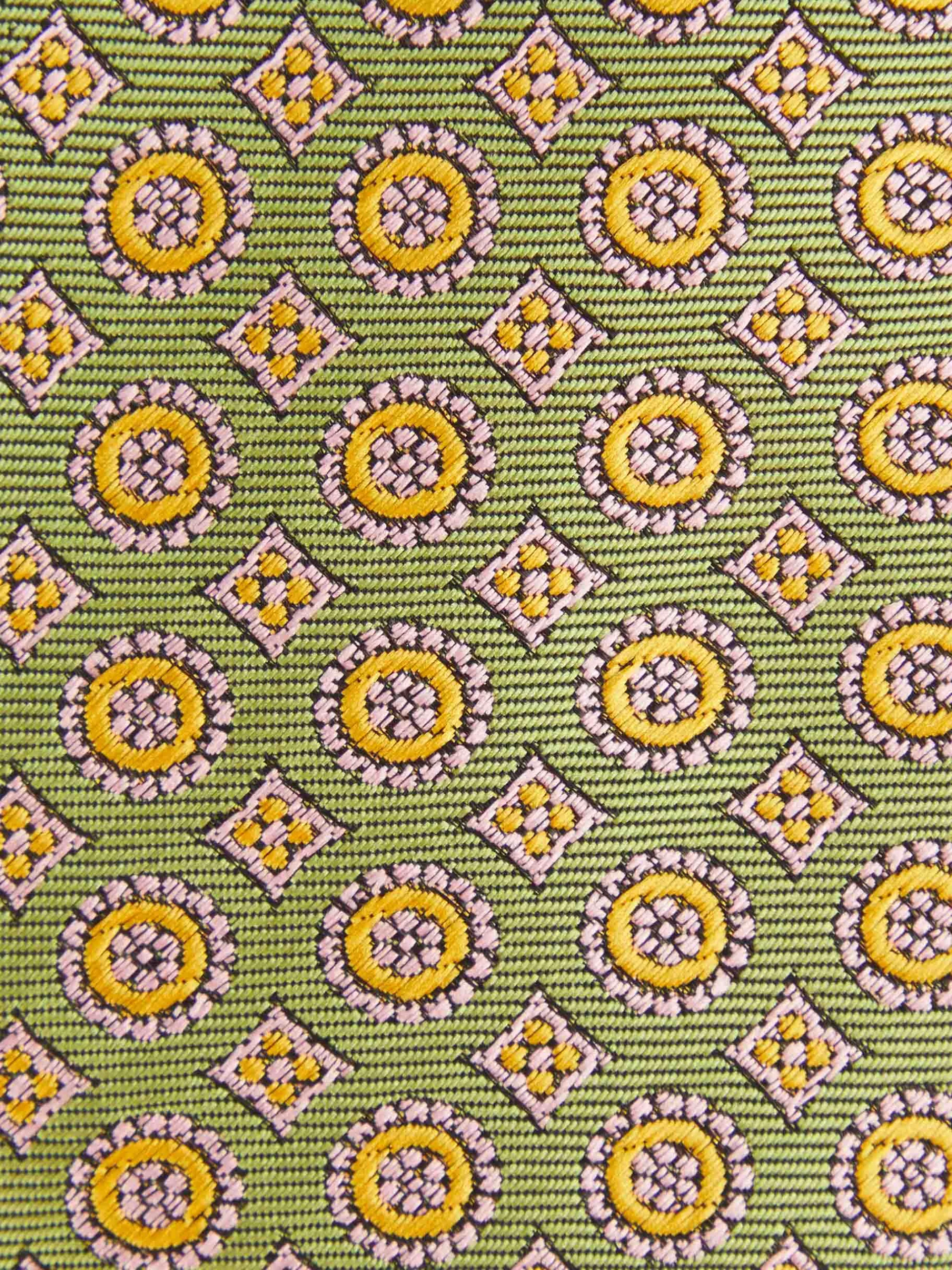 Corbata estilo jacquard con diseño estampado a contraste confeccionada en 100% poliéster. Cuenta con el logo de la marca grabado en el interior.