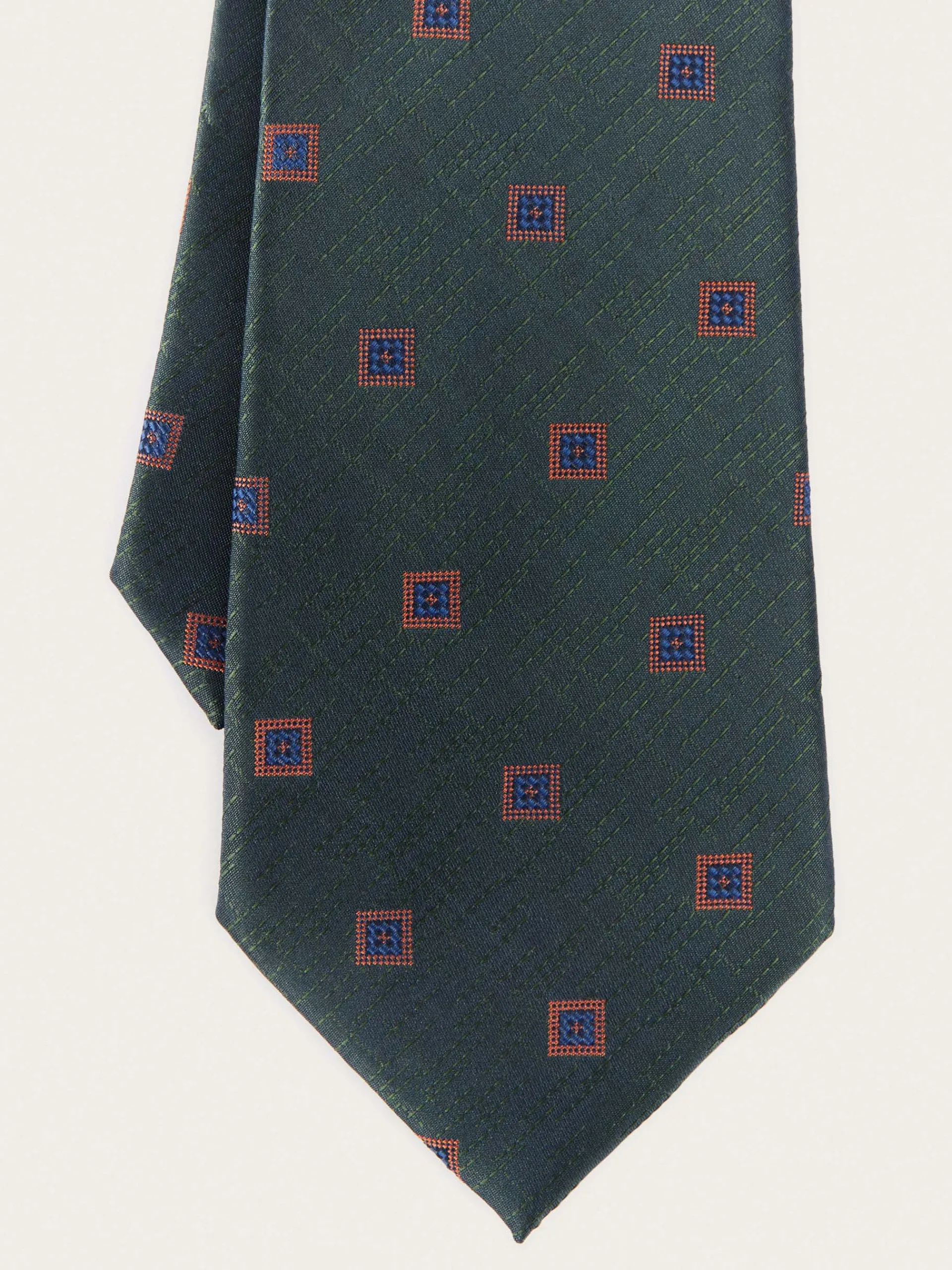 Corbata estilo jacquard con diseño estampado a contraste confeccionada en 100% poliéster. Cuenta con el logo de la marca grabado en el interior.