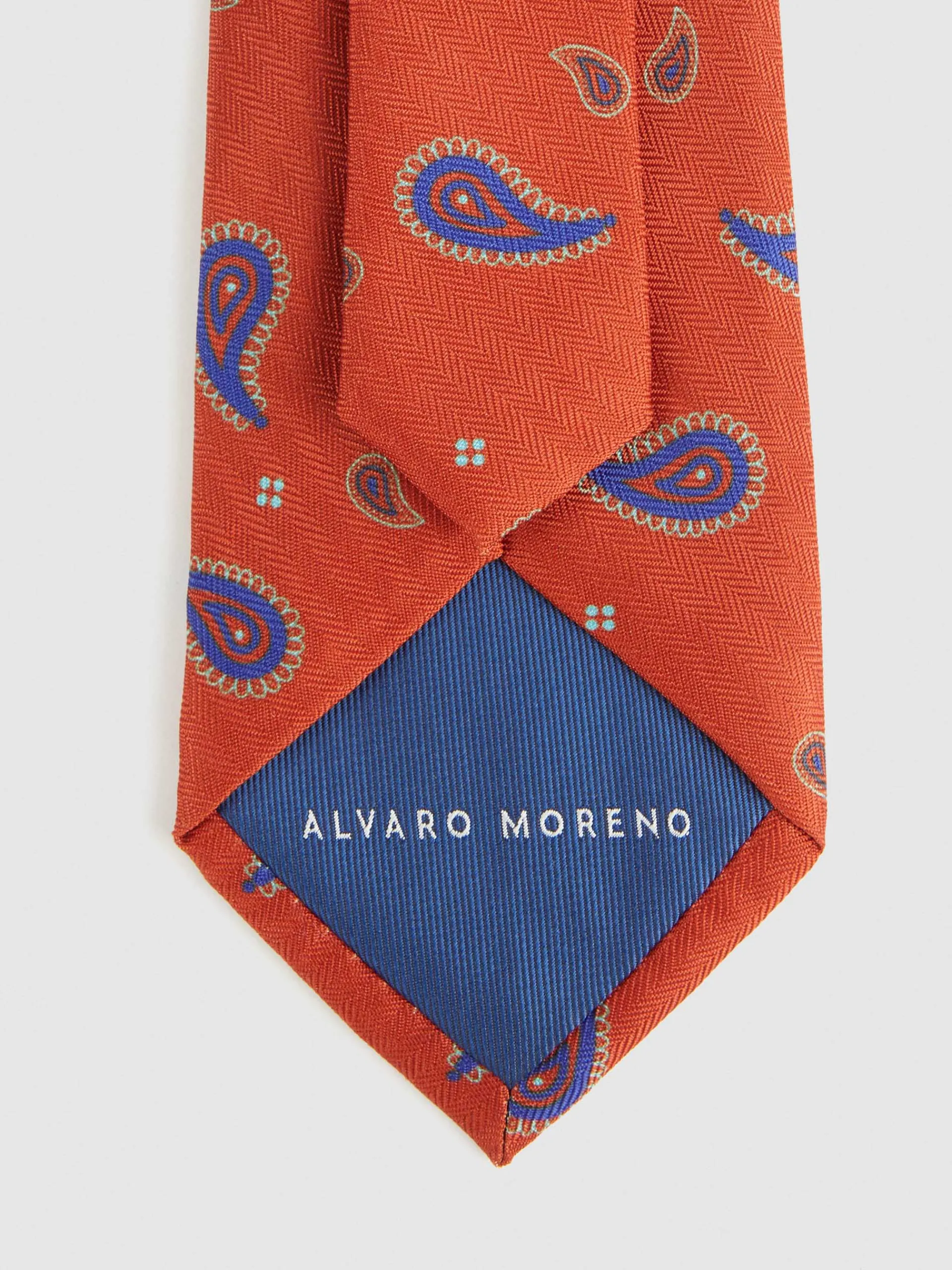 Corbata con diseño estampado personalizado confeccionada en 100% poliéster. Cuenta con el logo de la marca grabado en el interior.