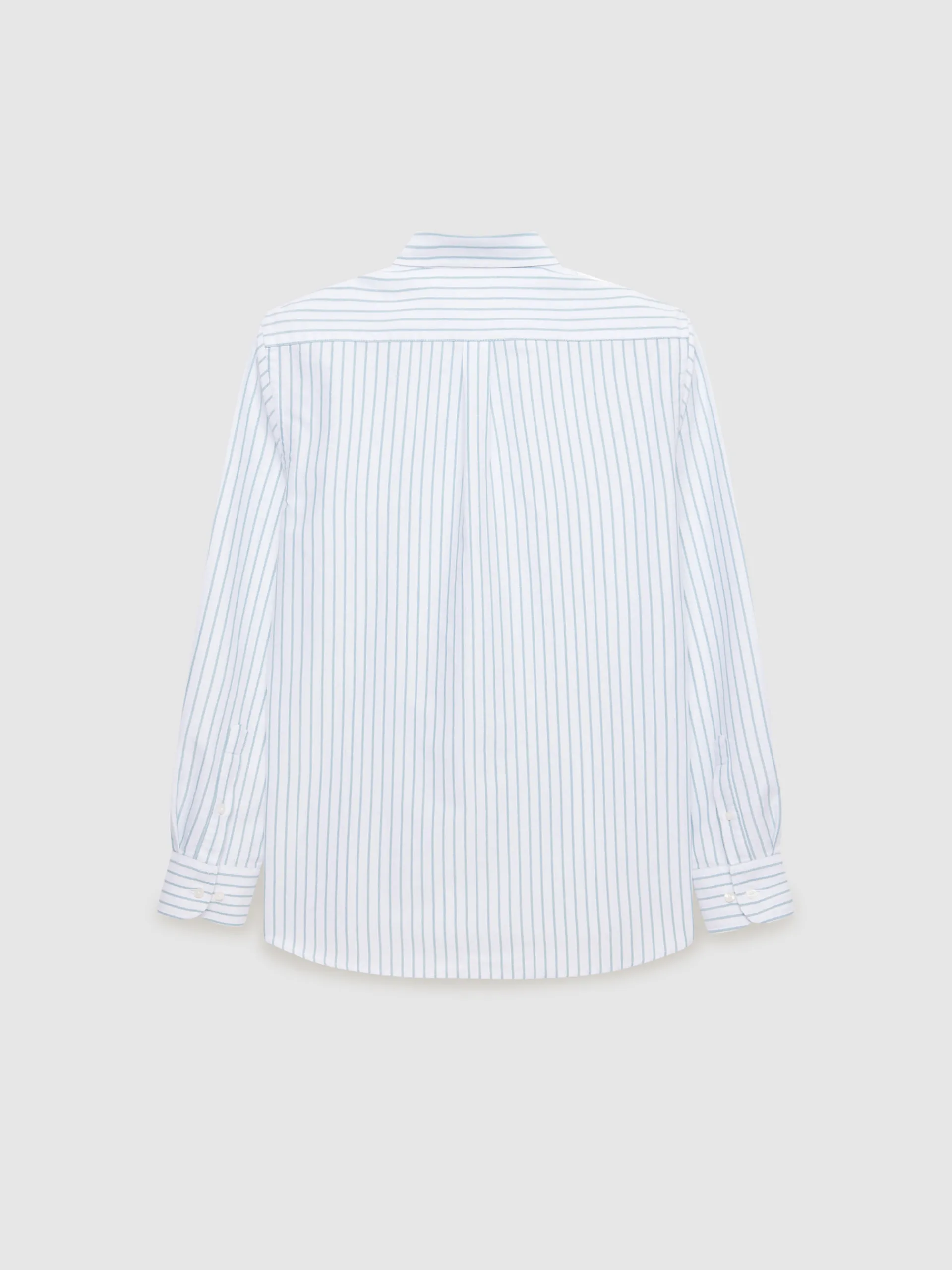 Camisa estilo a rayas confeccionada en algodón. Cuenta con cuello botón, manga larga de puños simples y logo grabado al tono en el frontal. Corte regular fit.